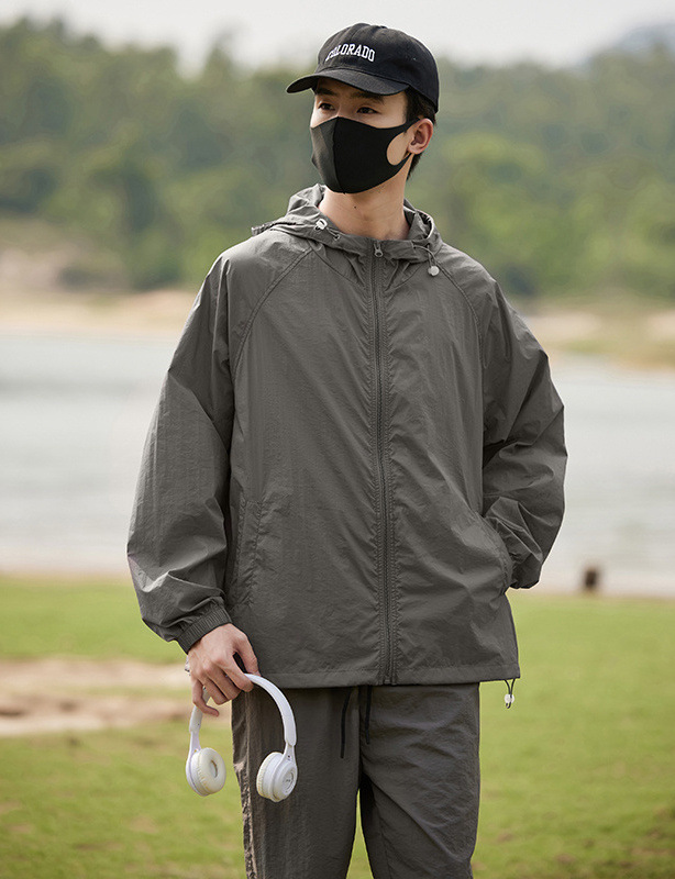 야외 산 스타일 경량 피부 의류 자외선 차단제 세트 후드 남성과 여성의 느슨한 다목적 단색 반바지 재킷 여름스토어 가기