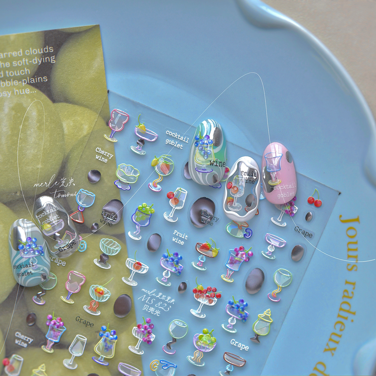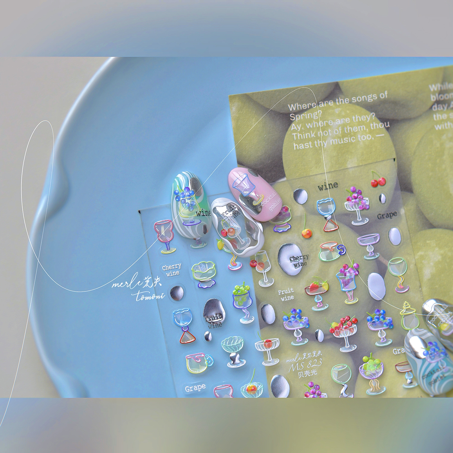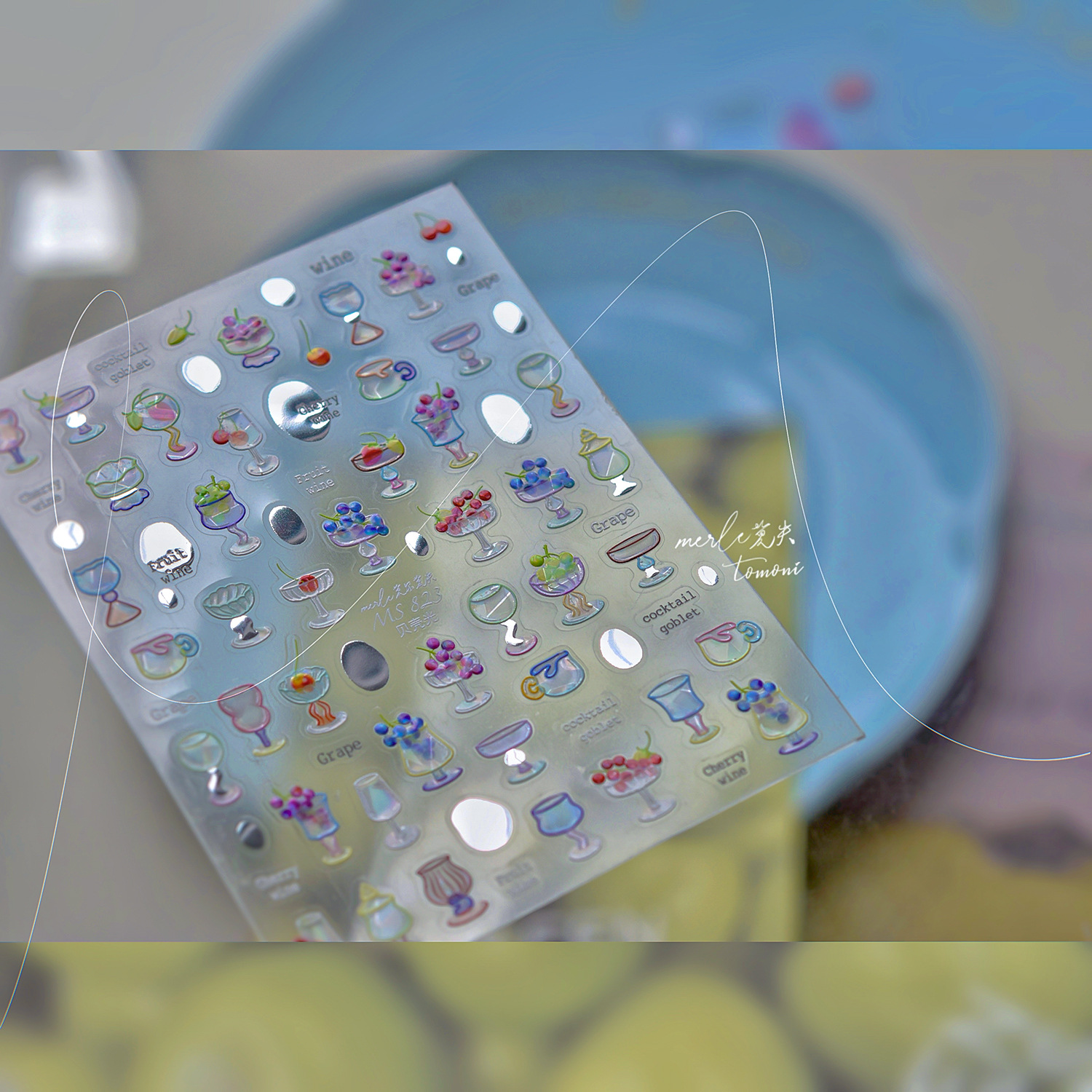 tomoni&모실 쉘 라이트 네일 아트 스티커 얼음 투명 ins 스타일 네일 스티커 과일 유리 컵 스티커 소재