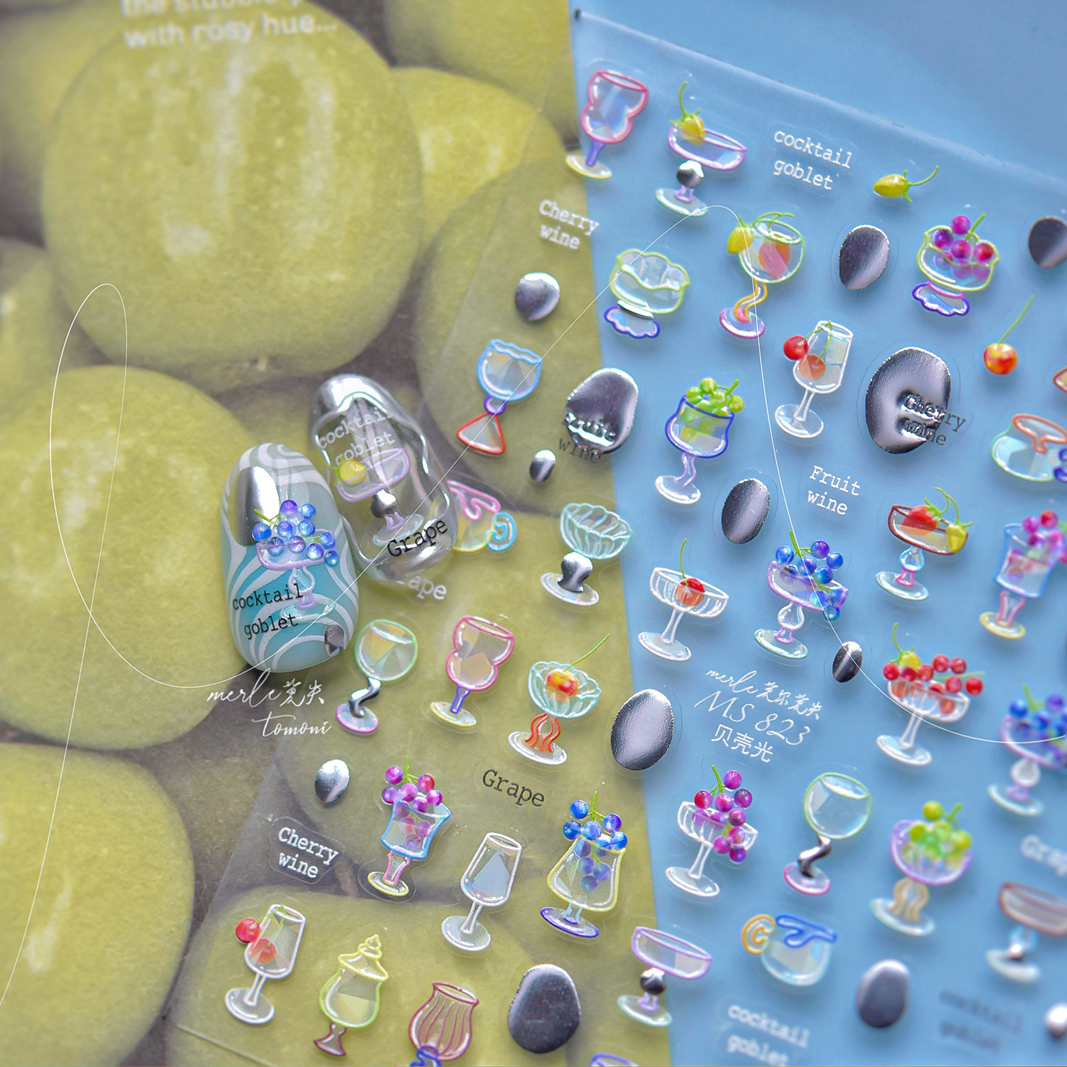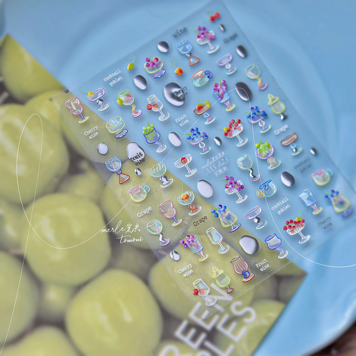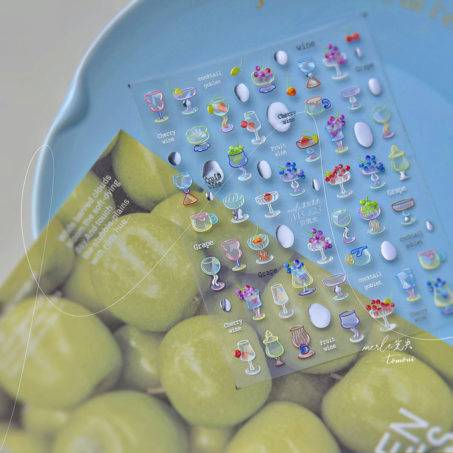 tomoni&모실 쉘 라이트 네일 아트 스티커 얼음 투명 ins 스타일 네일 스티커 과일 유리 컵 스티커 소재