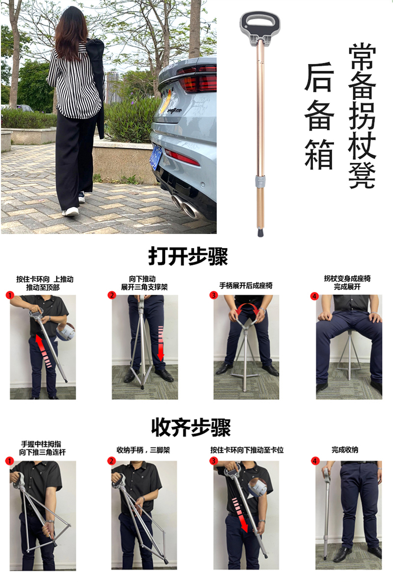 고급스러운 지팡이, 미끄럼 방지 휴대용 지팡이 의자, 다기능 지팡이 의자, 의자가 있는 노인용 야외 등산 지팡이스토어 가기