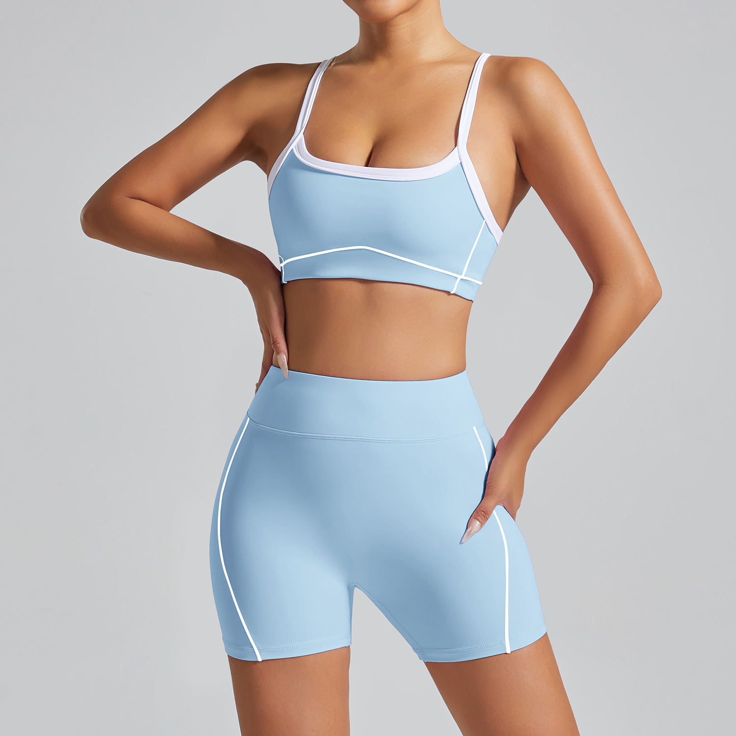 국경 간 유럽과 미국의 요가 슈트, 꽉 끼는 겉옷, 여성용 속건성 피트니스 슈트, 고탄성 야외 피트니스 러닝 슈트스토어 가기