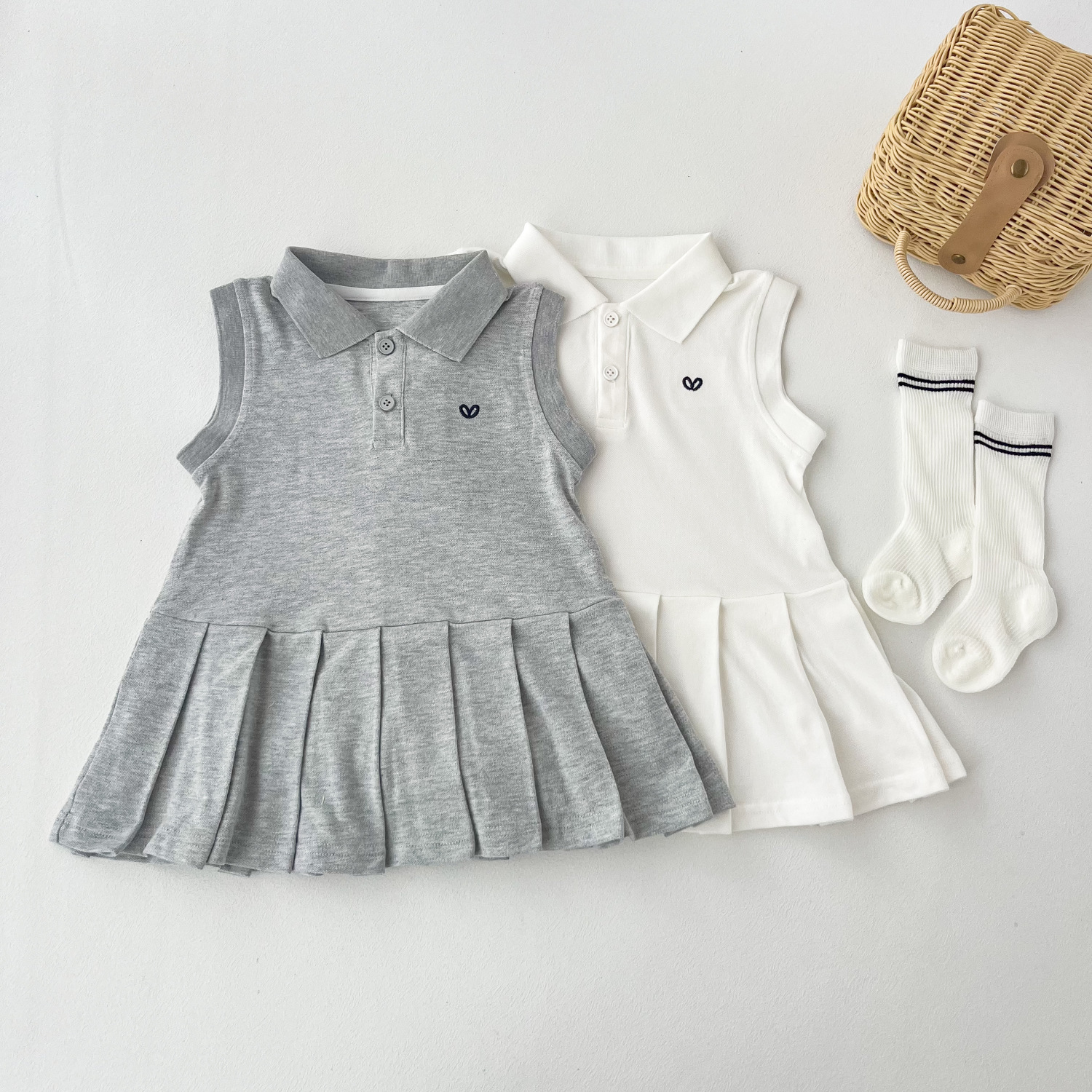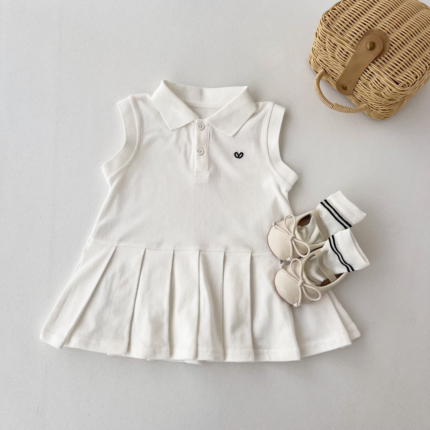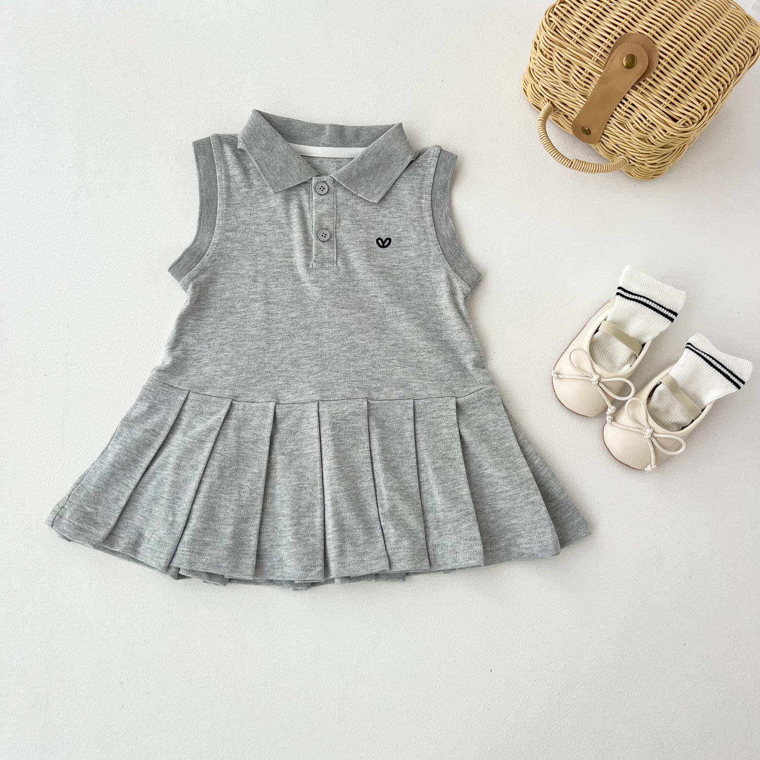 여자 드레스 2025 여름 새로운 스타일 어린이 폴로 공주 드레스 아기 소녀 주름 조끼 드레스 여름 드레스
