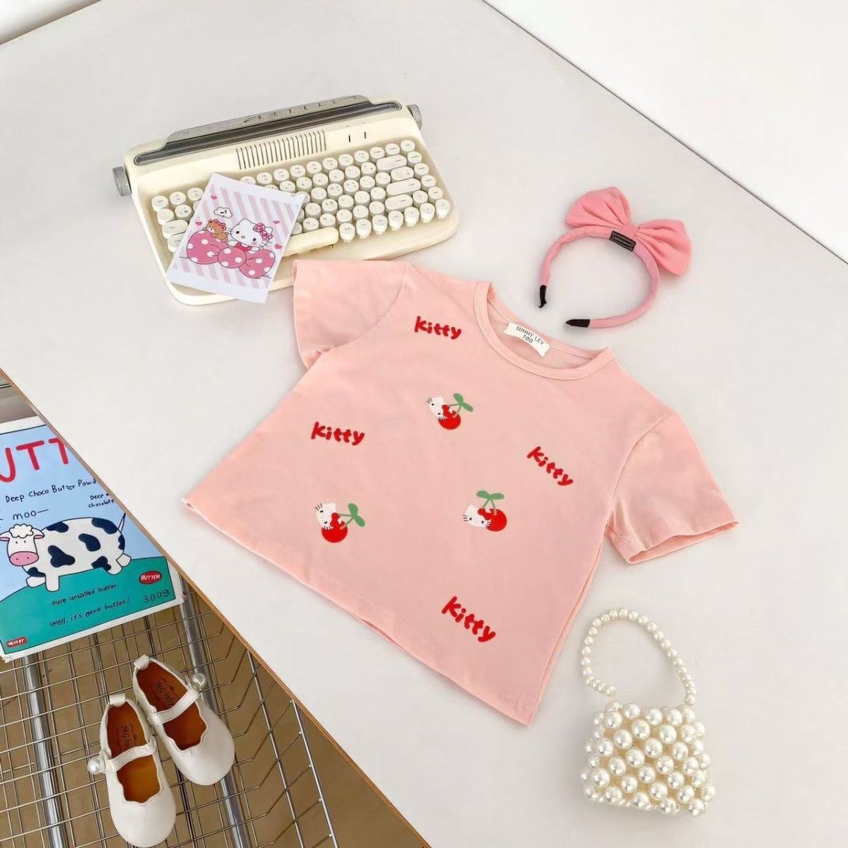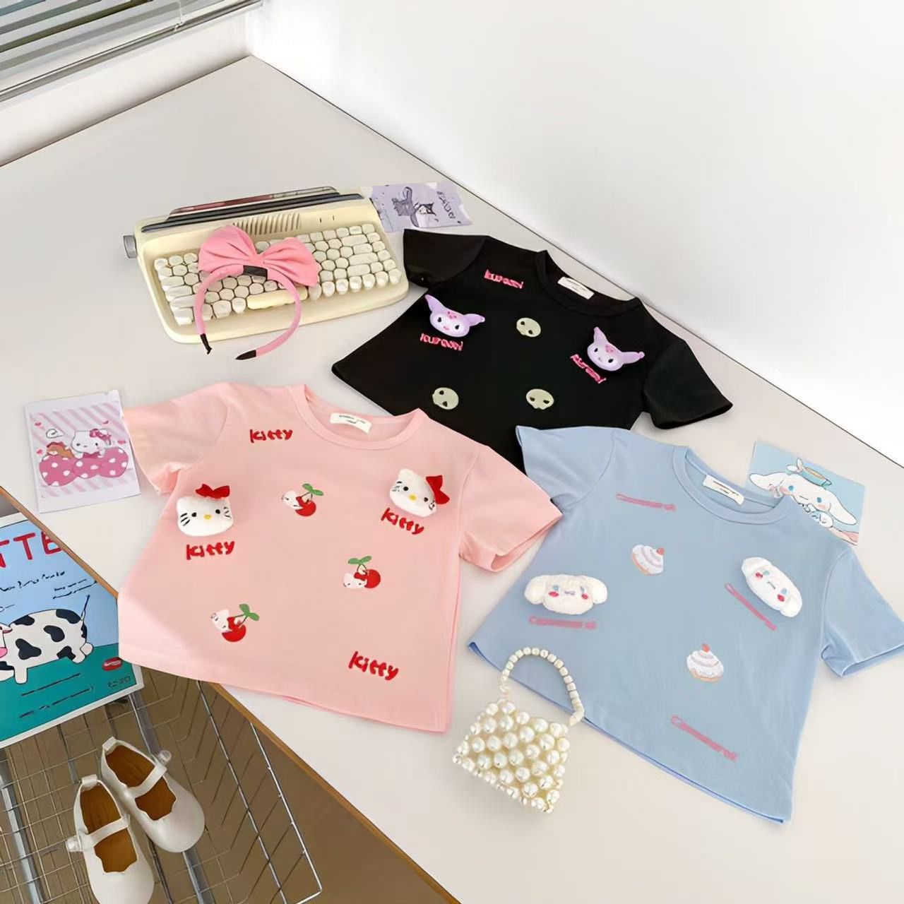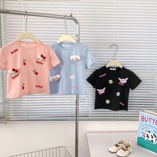 2025 새로운 여자 얇은 어린이 여름 반팔 입체 티셔츠 아기 유행 여름 투피스 캐주얼 트렌드스토어 가기