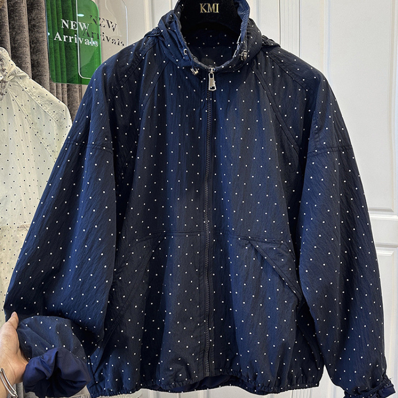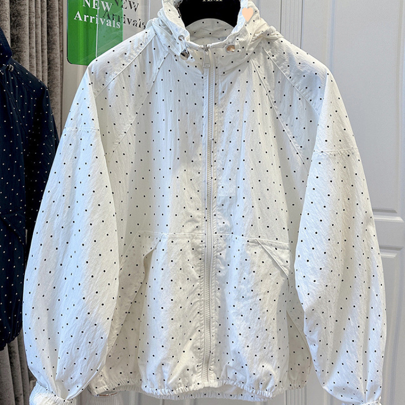 올해 유행하는 폴카 도트 후드 쇼트 코트 여성 자켓 루즈 캐주얼 여름 신작스토어 가기