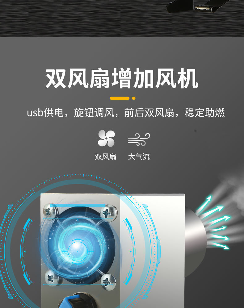 • 더 큰 재 배출 모델[]팬[]바람막이[]보조 배터리[]선물 패키지[]