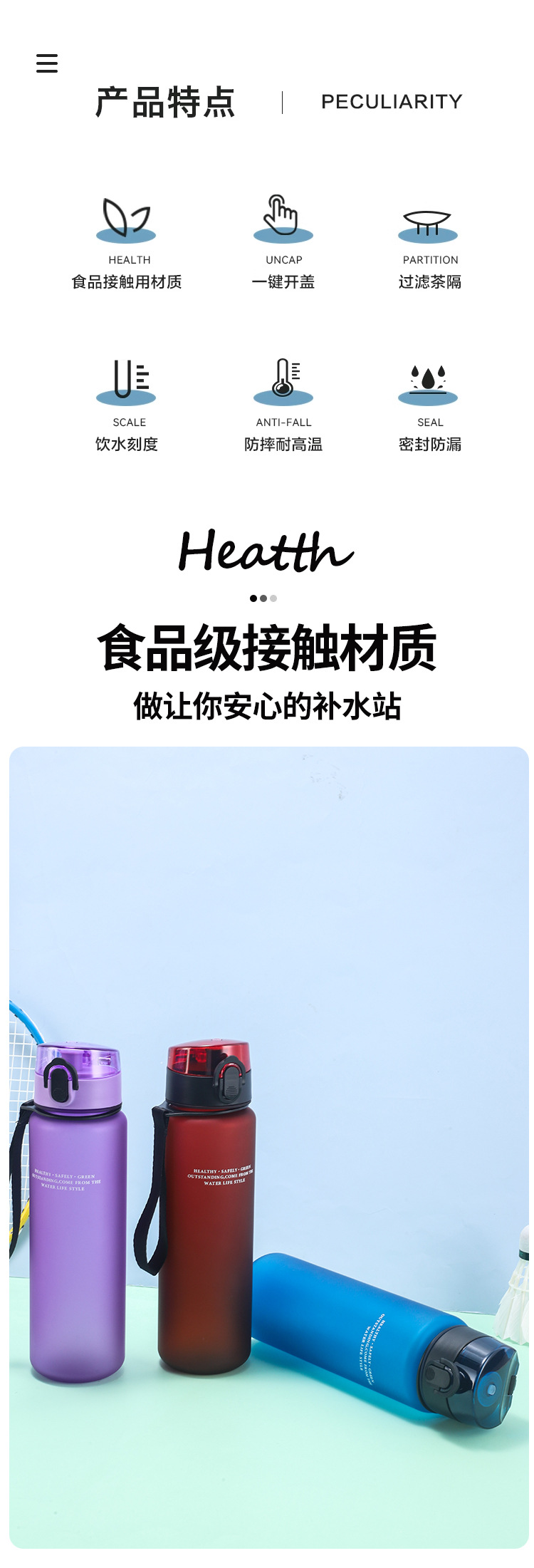 소년을 위한 멋진 간단한 반투명 스포츠 물컵, 여름 휴대용 낙하 방지 야외 피트니스 컵 플라스틱 컵