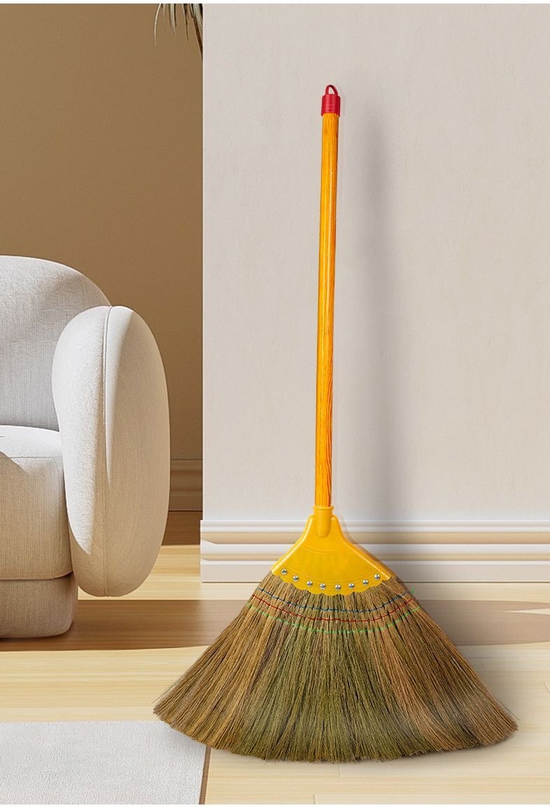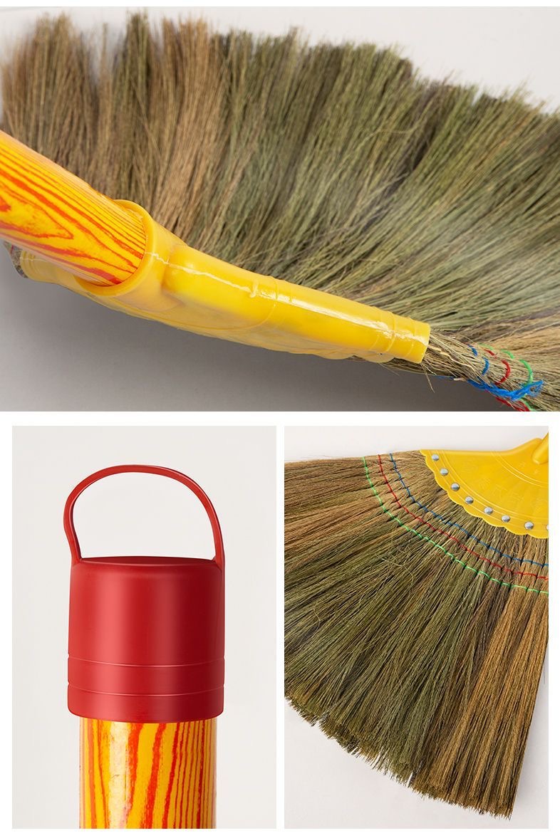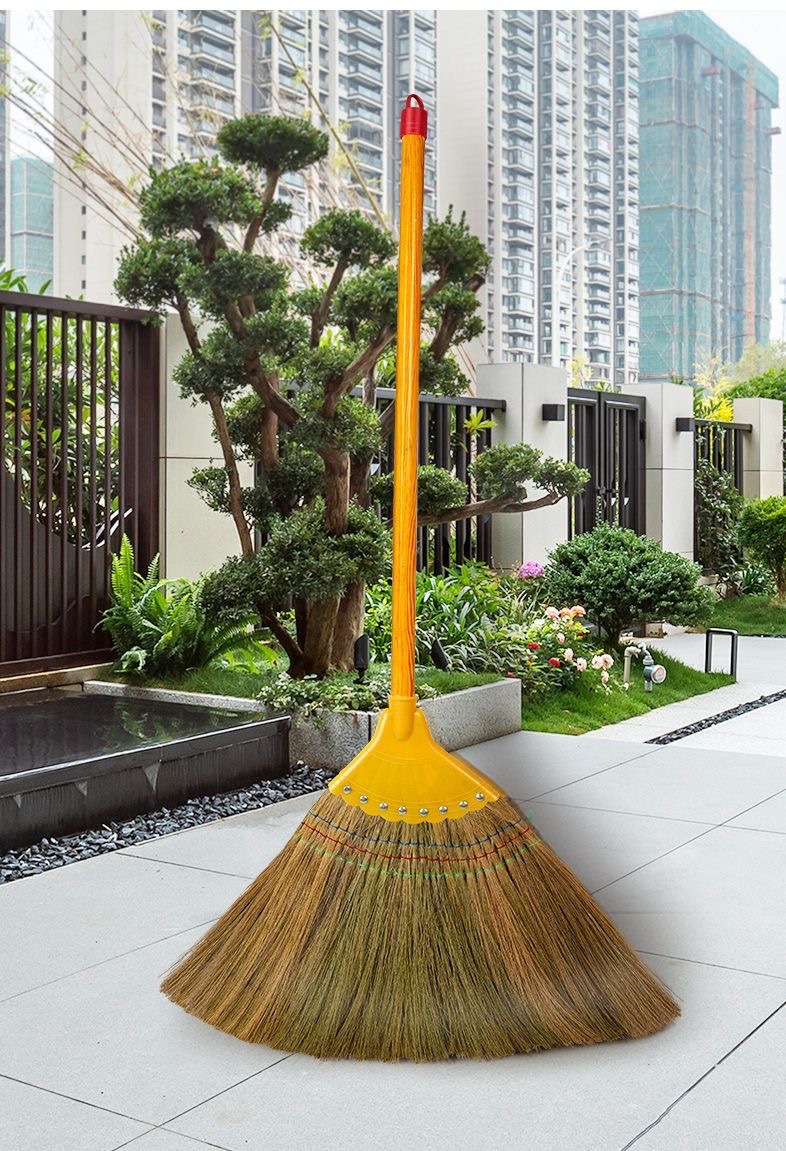 Mang·Broom 가정용 청소용 빗자루 부드러운 머리카락이 달린 붙지 않는 머리카락 구식 수수 빗자루 마당 야외 싱글