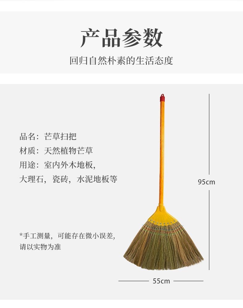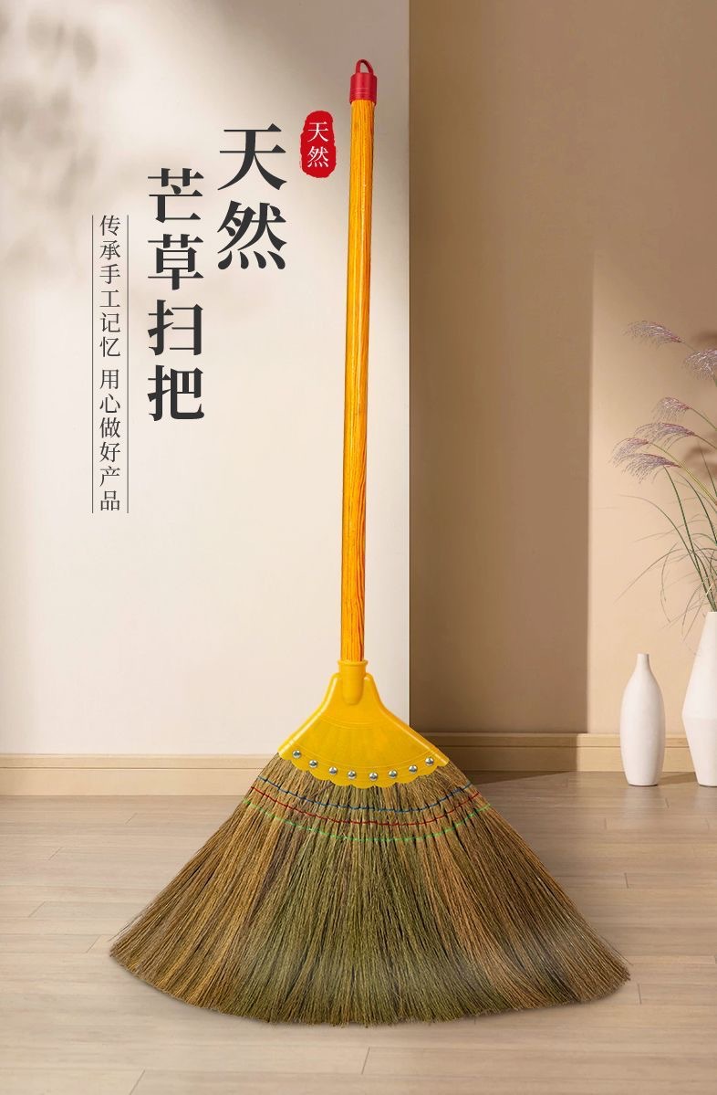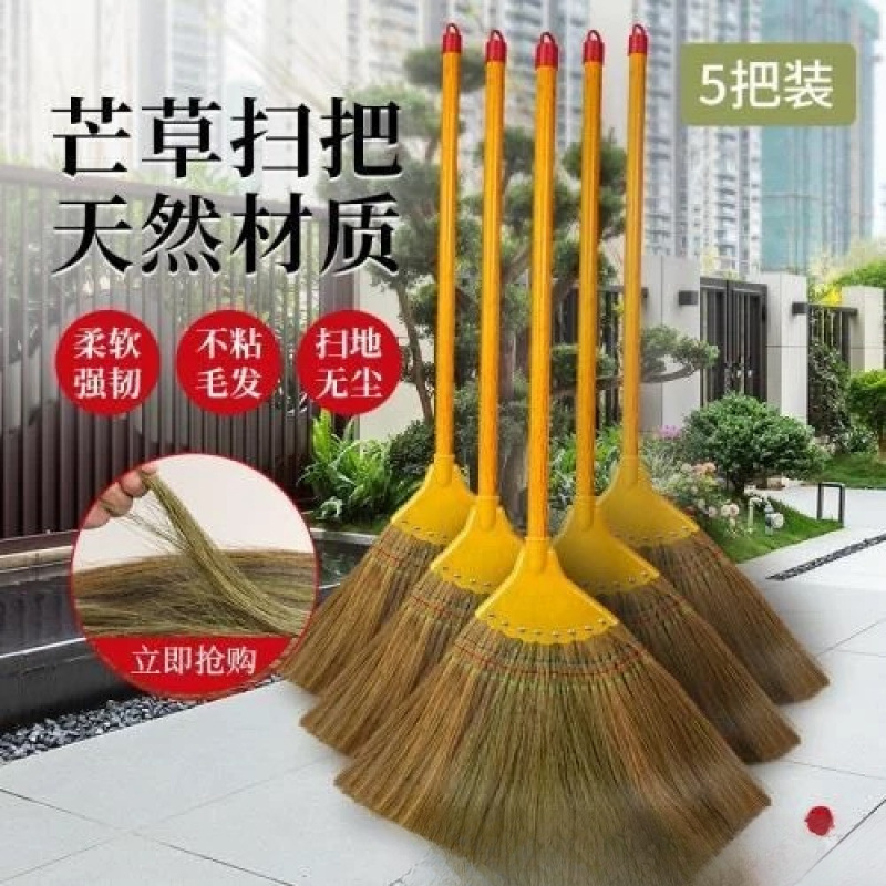 Mang·Broom 가정용 청소용 빗자루 부드러운 머리카락이 달린 붙지 않는 머리카락 구식 수수 빗자루 마당 야외 싱글스토어 가기