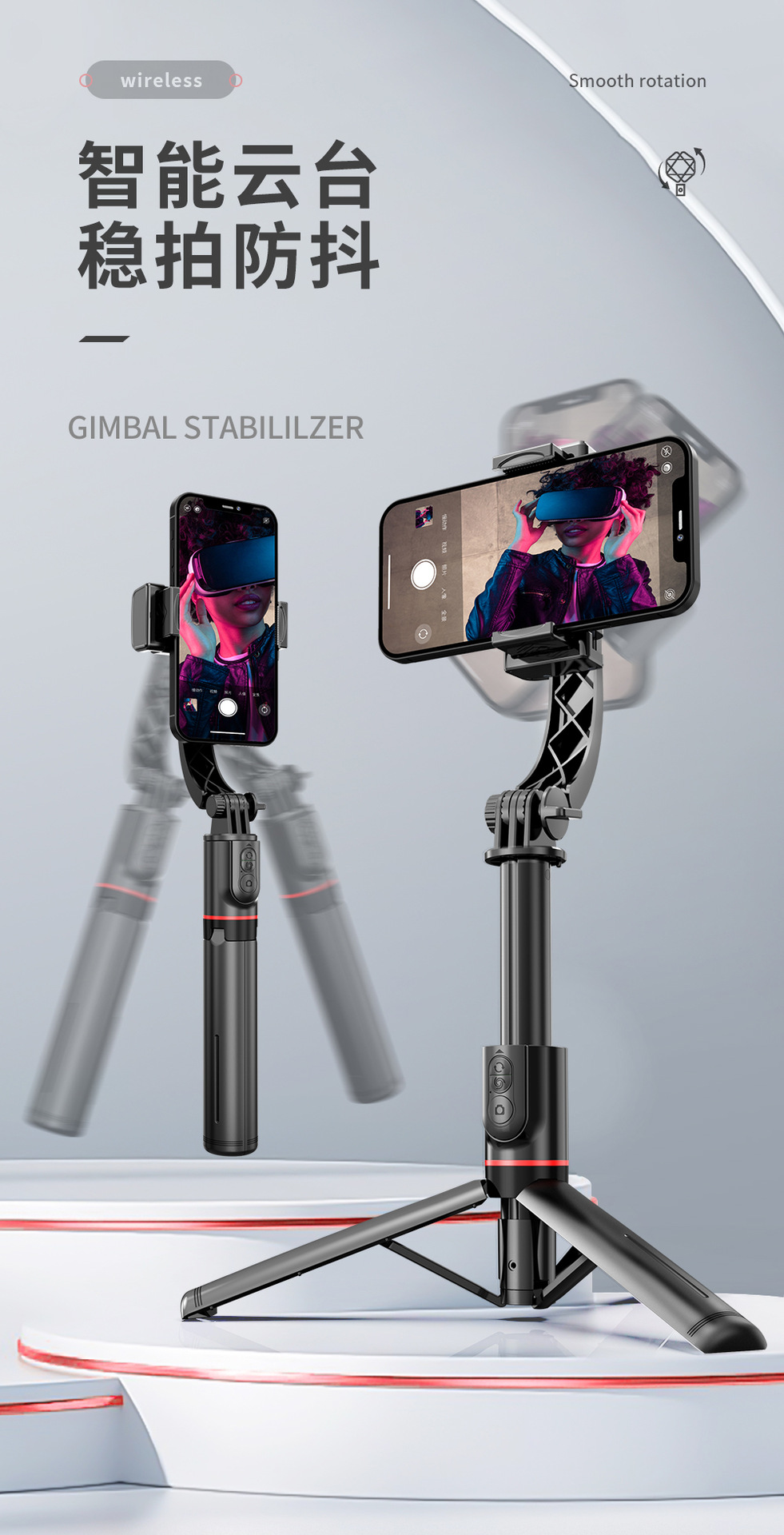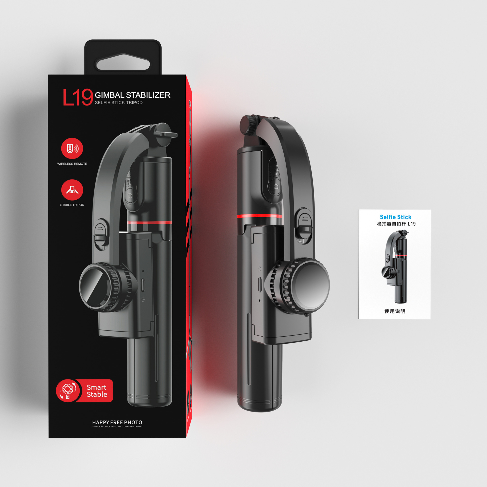 동일한 L19 셀카봉, 얼굴 추적, 블루투스 촬영, 접이식 휴대폰 홀더, 손떨림 방지 짐벌 및 촬영 도구