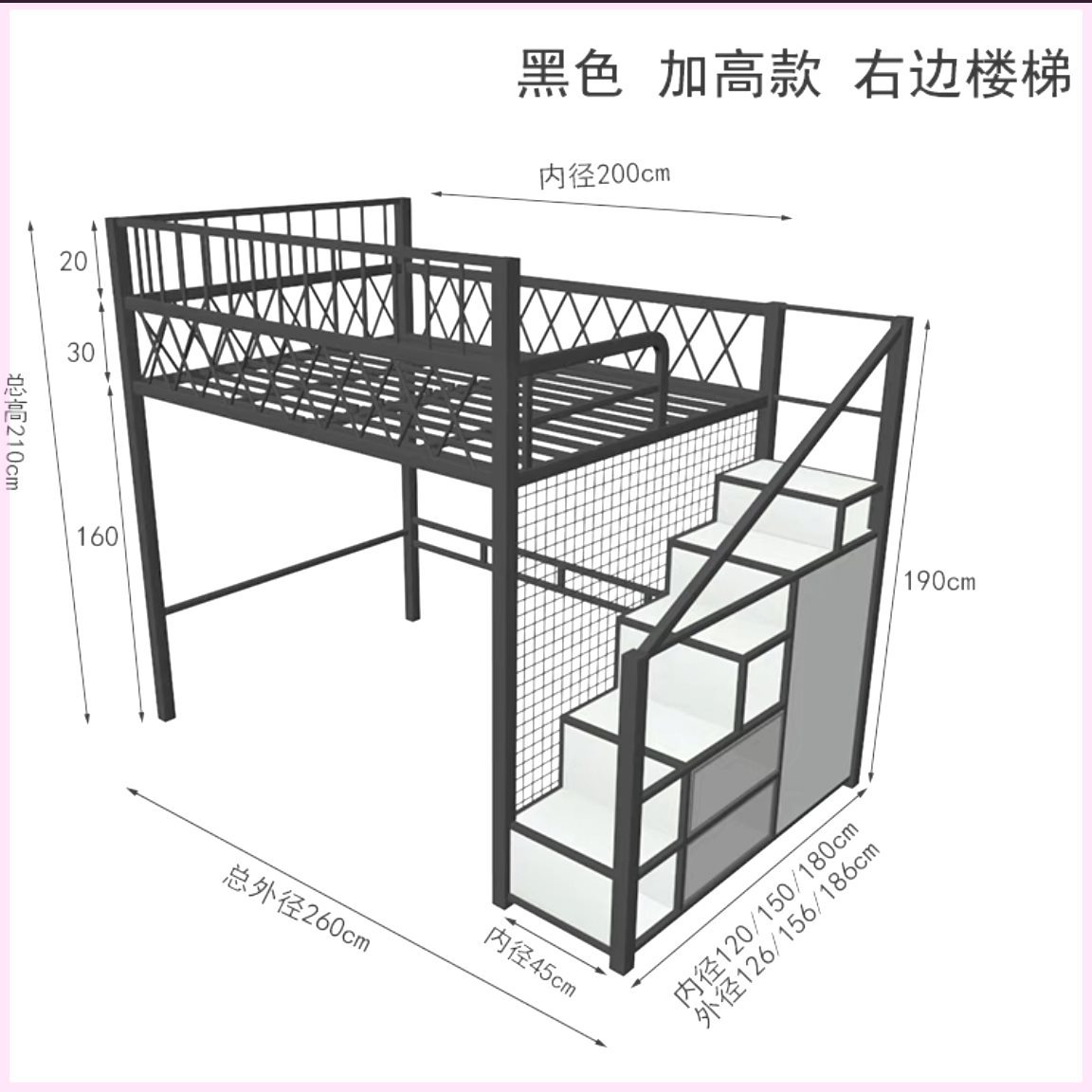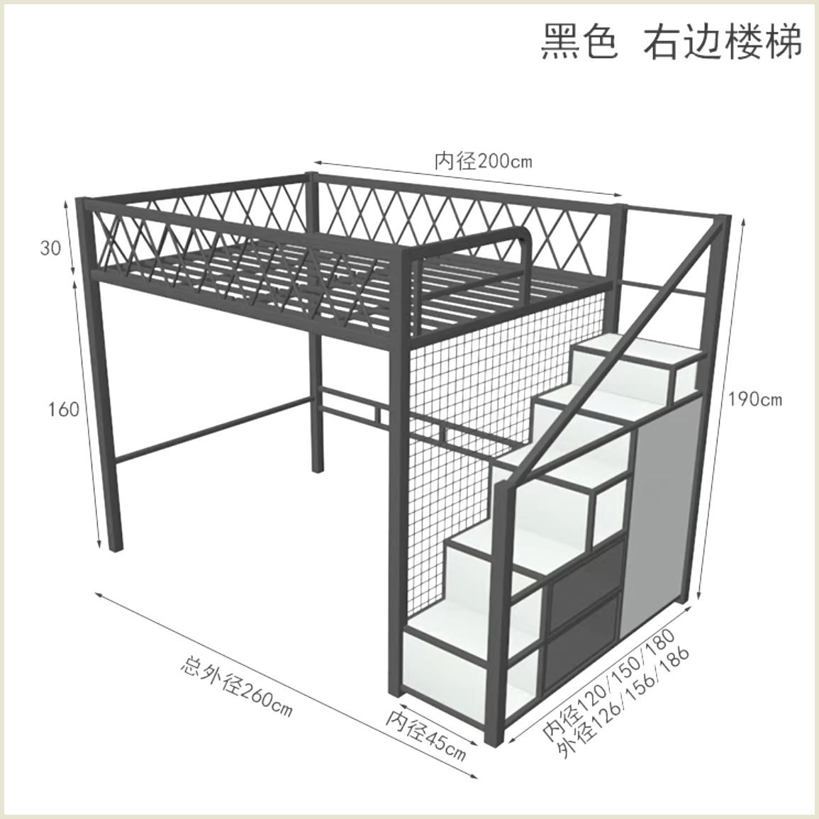 • 검은색 높은 난간 왼쪽 계단/135CM*200CM