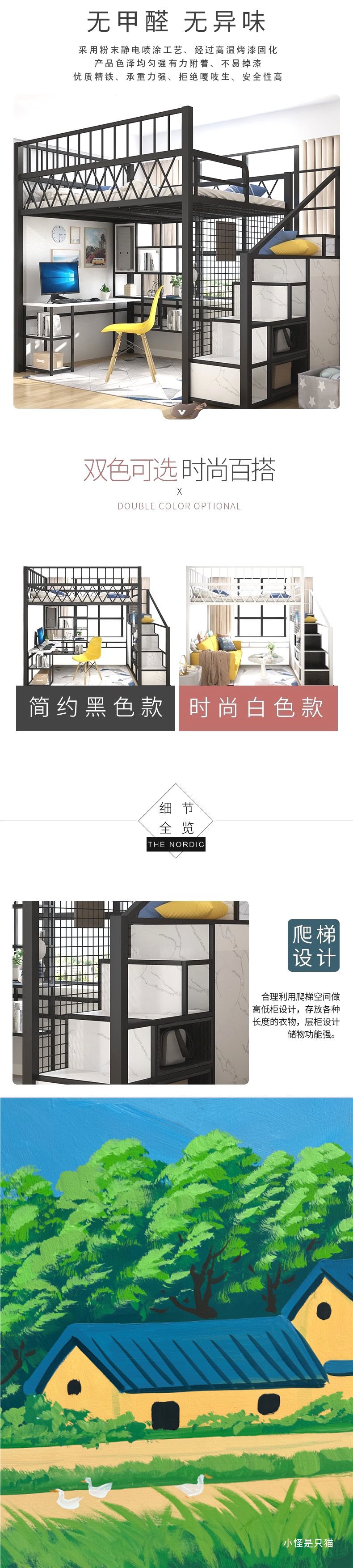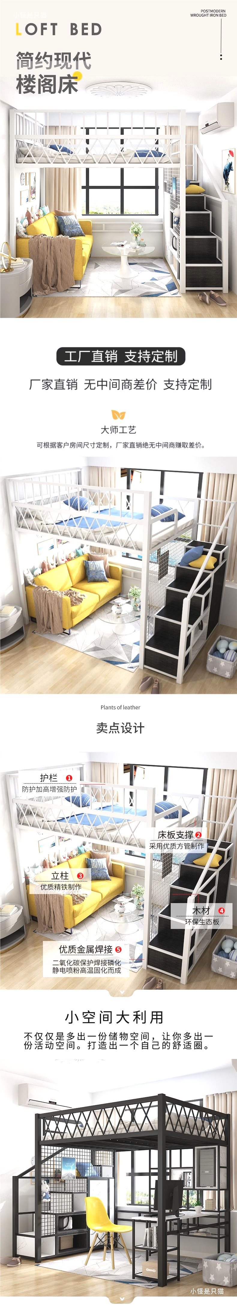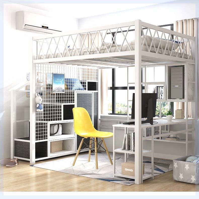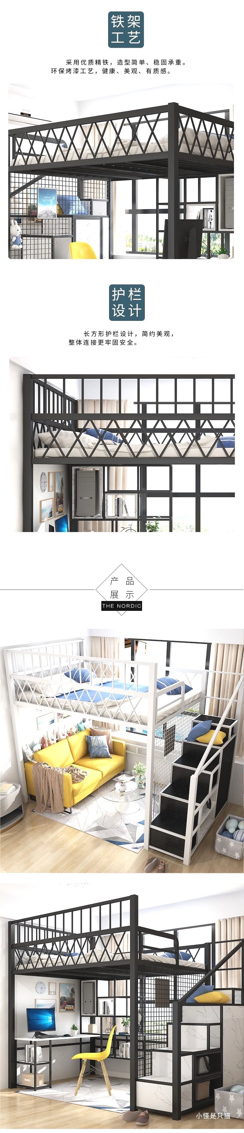 아파트용 북유럽 다기능 공간 절약형 로프트 침대, 복층형 싱글 상단 소형 아파트 철제 하이 로우 침대 로프트 침대스토어 가기