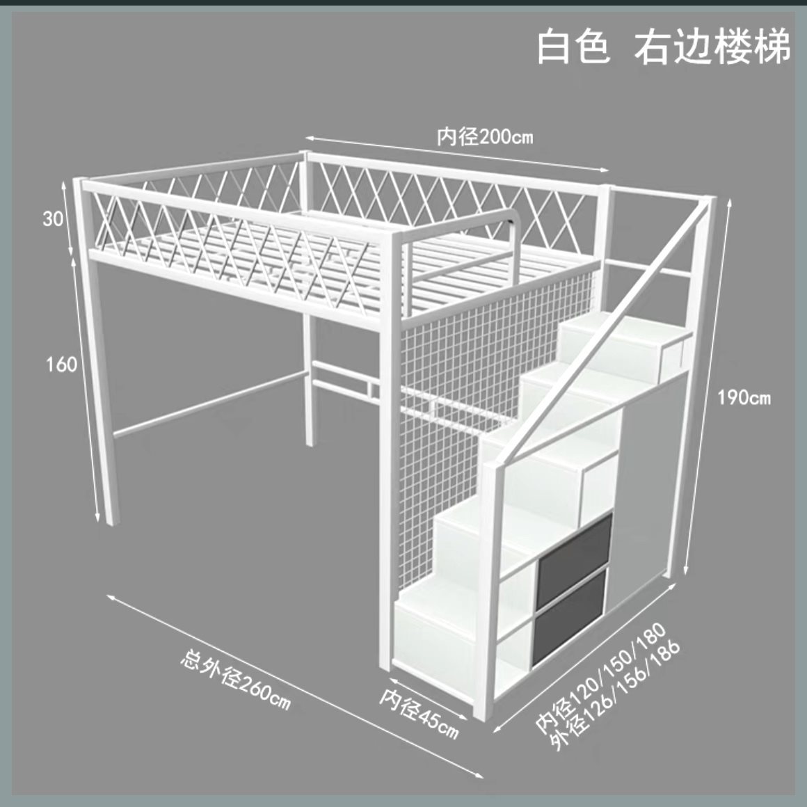 • 흰색 왼쪽 계단/100CM*190CM