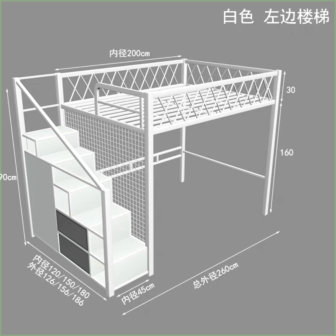 • 흰색 높은 난간 왼쪽 계단/135CM*200CM