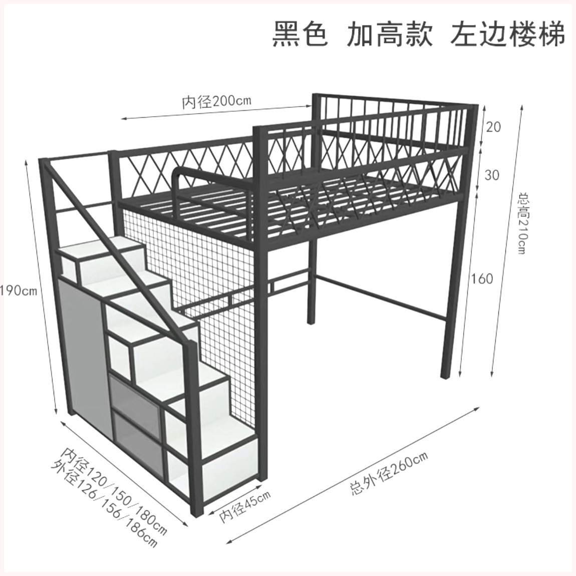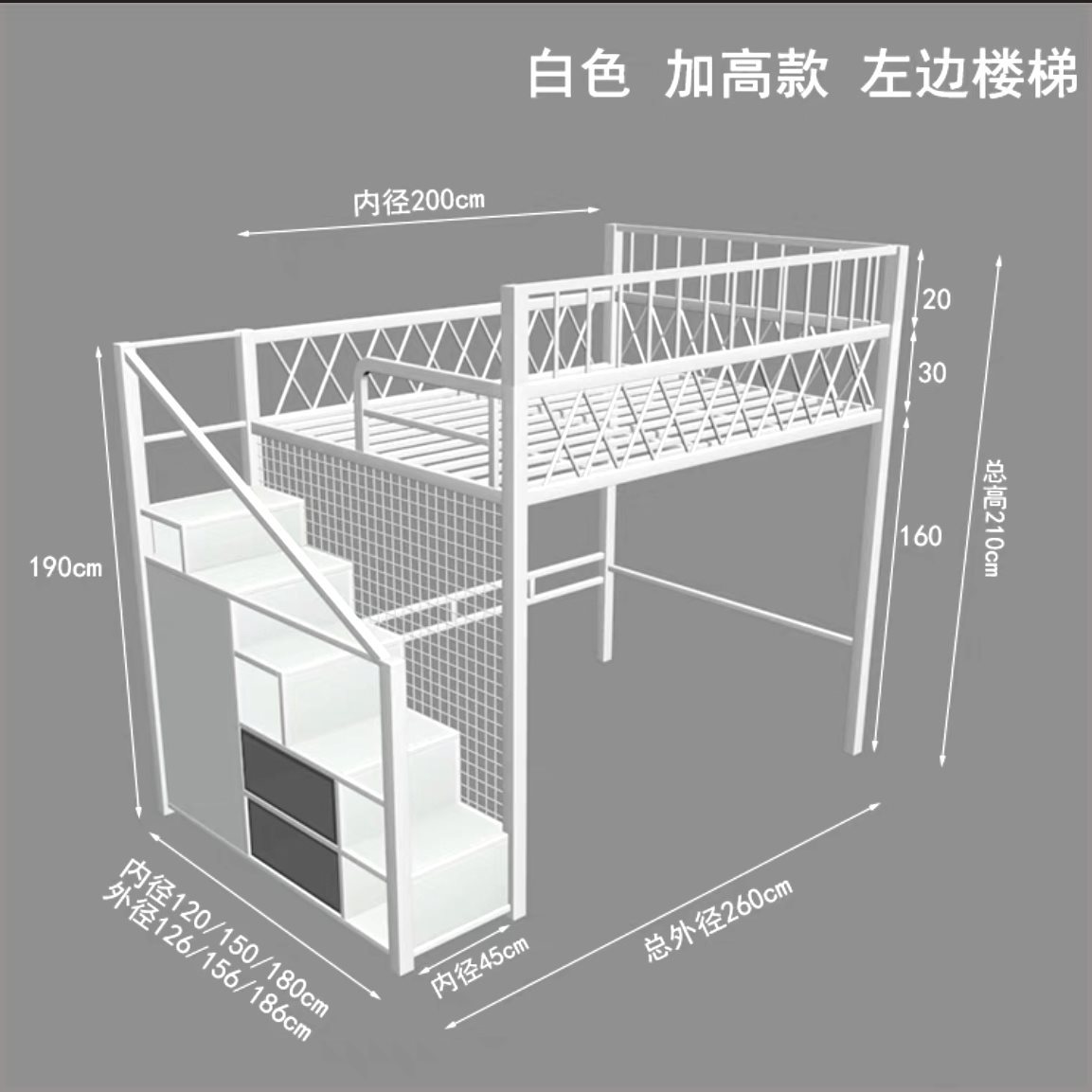 • 흰색 왼쪽 계단/180CM*200CM