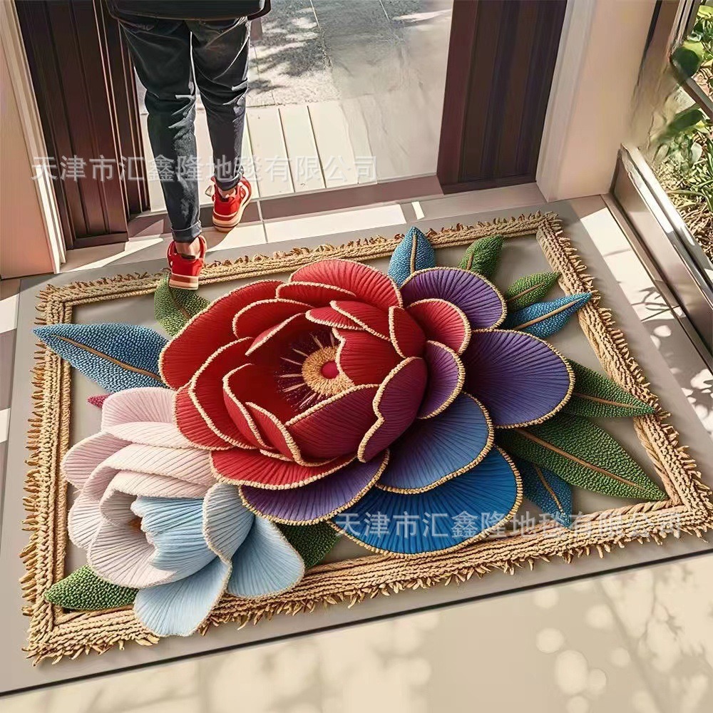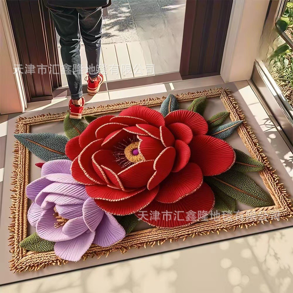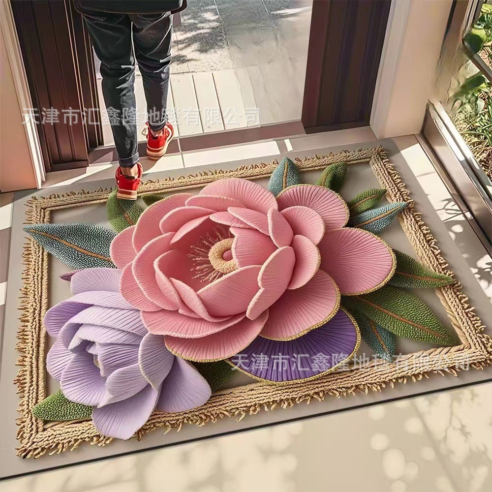 북유럽 스타일 가정용 욕실 흡수성 미끄럼 방지 바닥 매트 꽃 카펫 입구 현관 얼룩 방지 및 내마모성 도어 매트 크로스 보더스토어 가기