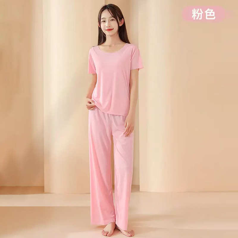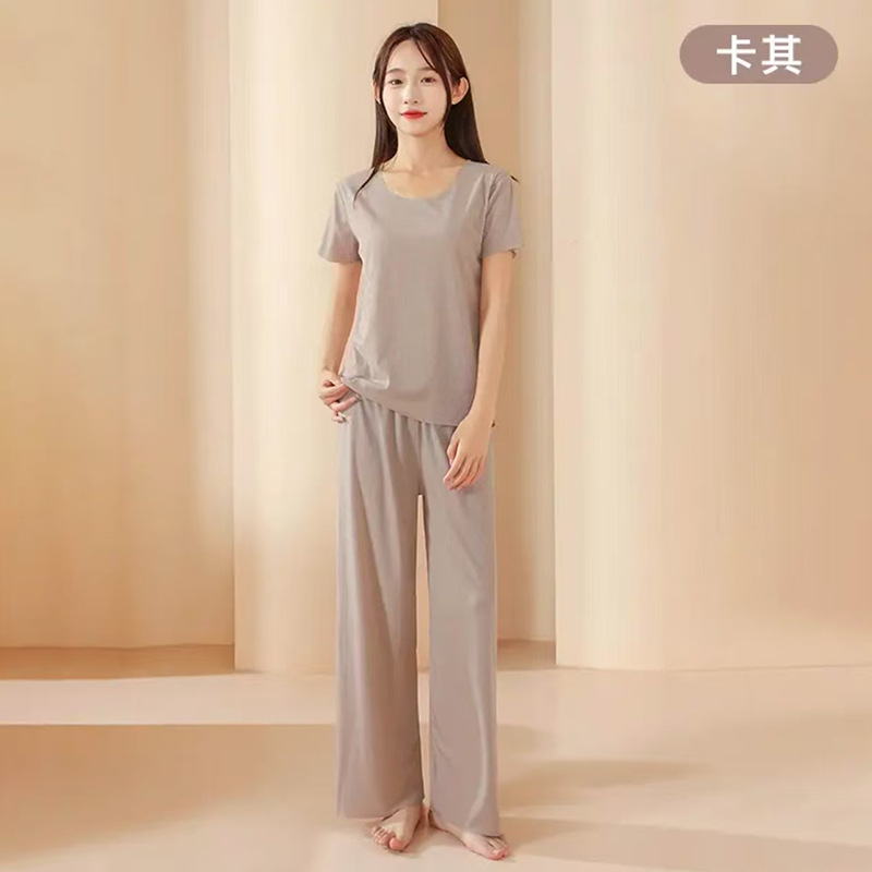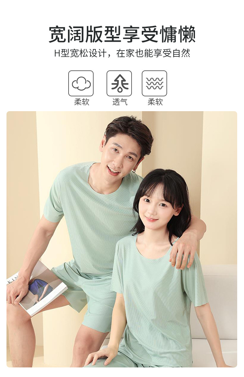 커플 얼음 실크 가정 의류 도매 여름 여성 라운드 넥 반팔 바지 정장 남성 반바지 얼음 실크 잠옷스토어 가기
