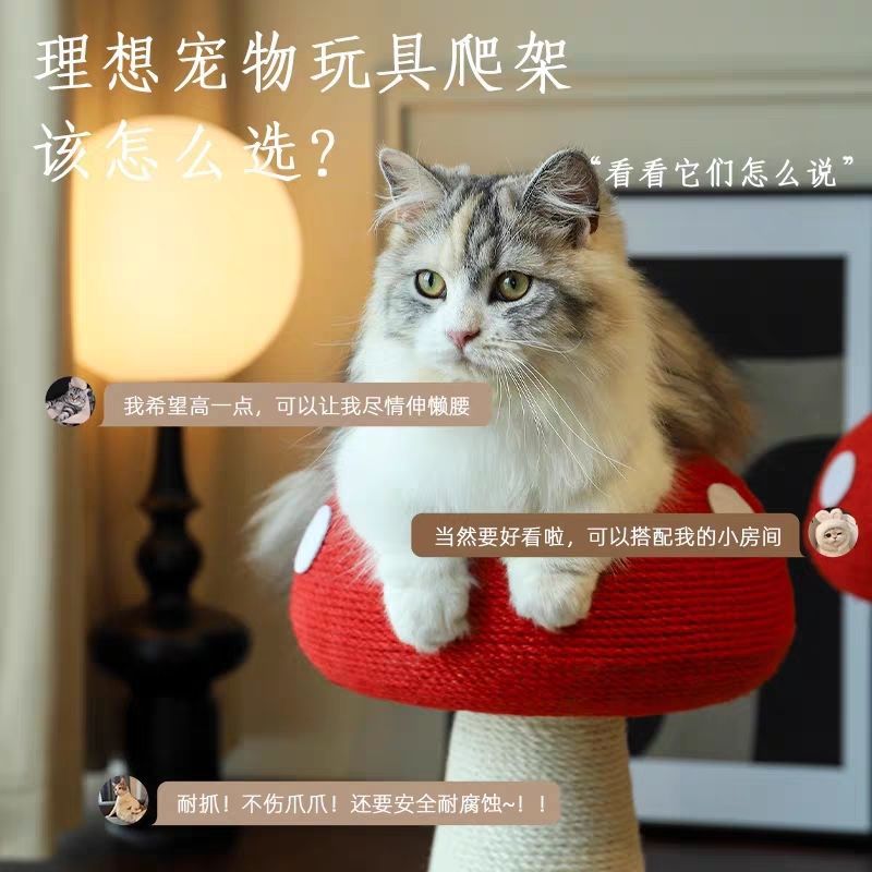 붉은 버섯 고양이 스크래치 보드, 전체 소나무 섬유 고양이 스크래치 기둥 장난감, 내마모성 및 비분해성 수직 고양이 클라이밍 프레임, 작은 아파트, 공간을 차지하지 않음스토어 가기