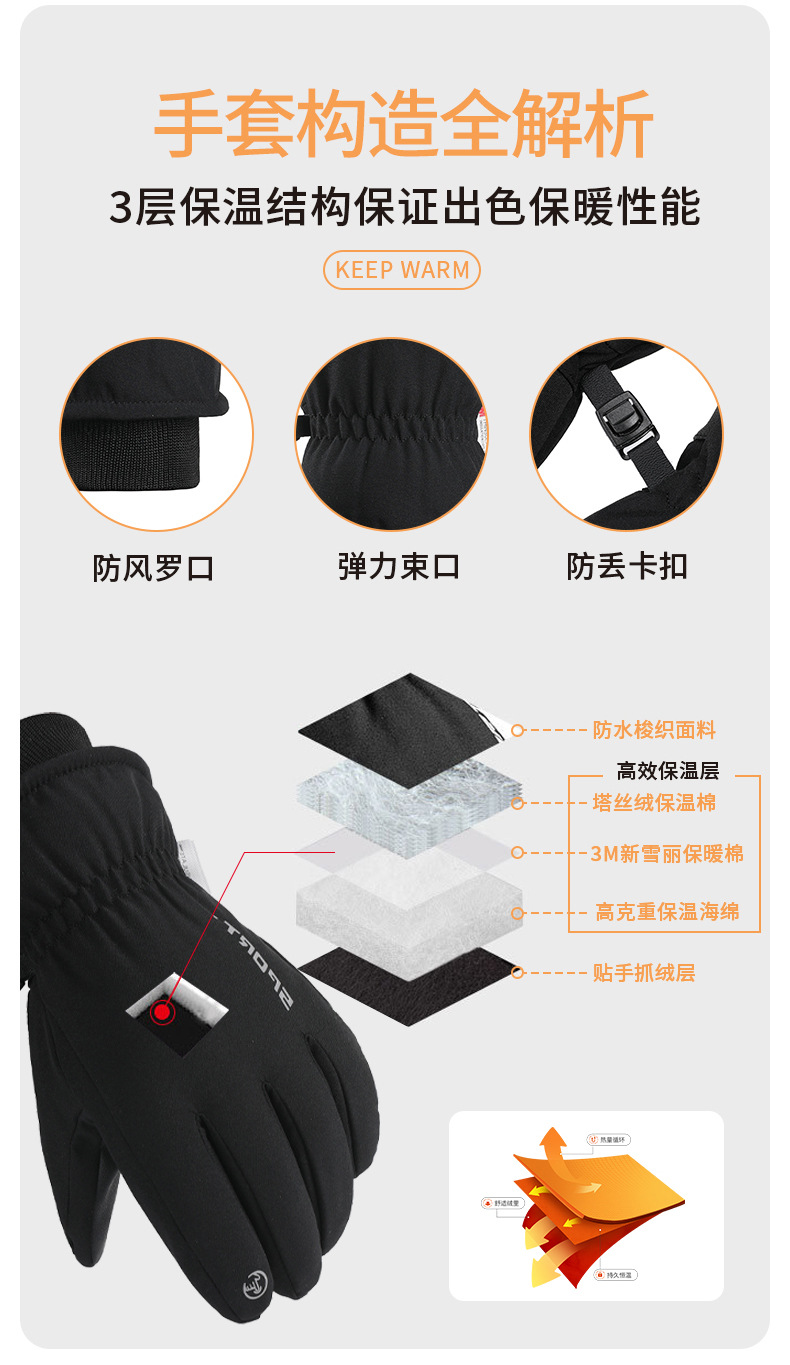겨울 제품 야외 사이클링 스포츠 겨울 따뜻한 스키 장갑 남성용 사이클링 터치 스크린 미끄럼 방지 방풍 및 방수스토어 가기