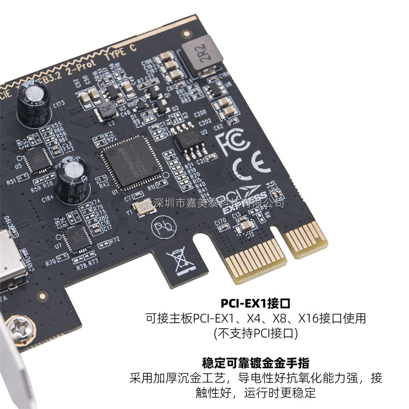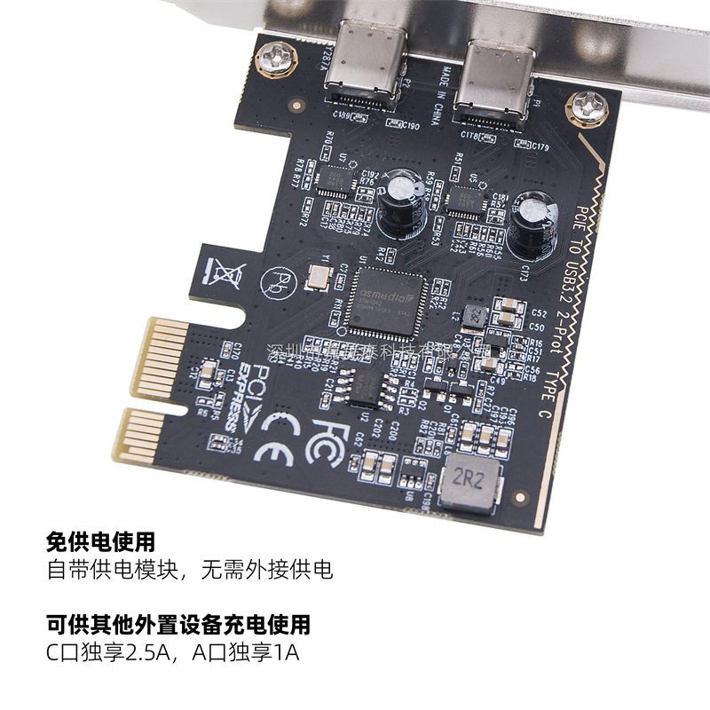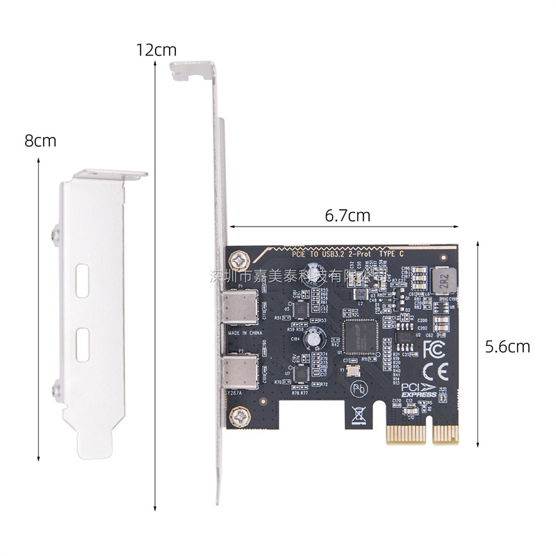 产品名称:PCI-E转2口USB3.2 gen1扩展卡
