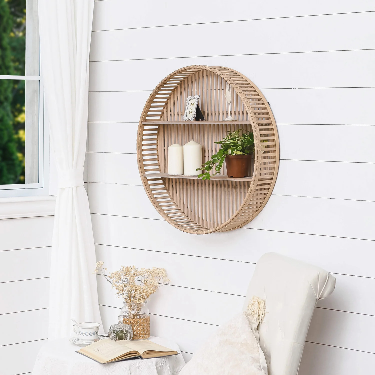 맞춤형 대나무 원형 벽걸이 홈 장식 벽걸이 정리함 장식품 다층 목재 벽걸이 선반