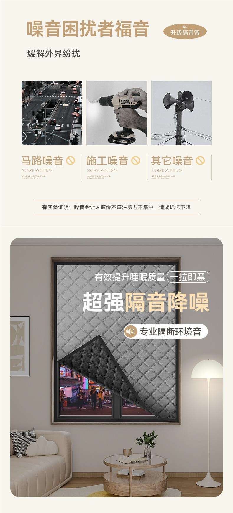 거리에 있는 방음 커튼, 두꺼운 강력한 차광 천, 전문 창 벨크로, 완전 무소음, 소음기, 면, 얇은스토어 가기