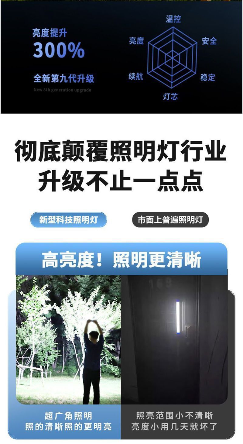 • 슈퍼 + 브라이트 [비상 충전 램프는 7H 지속] 슈퍼 충전 + 자기 폭발 + 충전 - [충전 모델] 독일 수입 구리 코어 + 전원 리튬 배터리