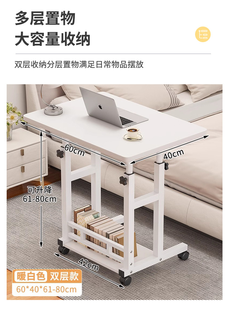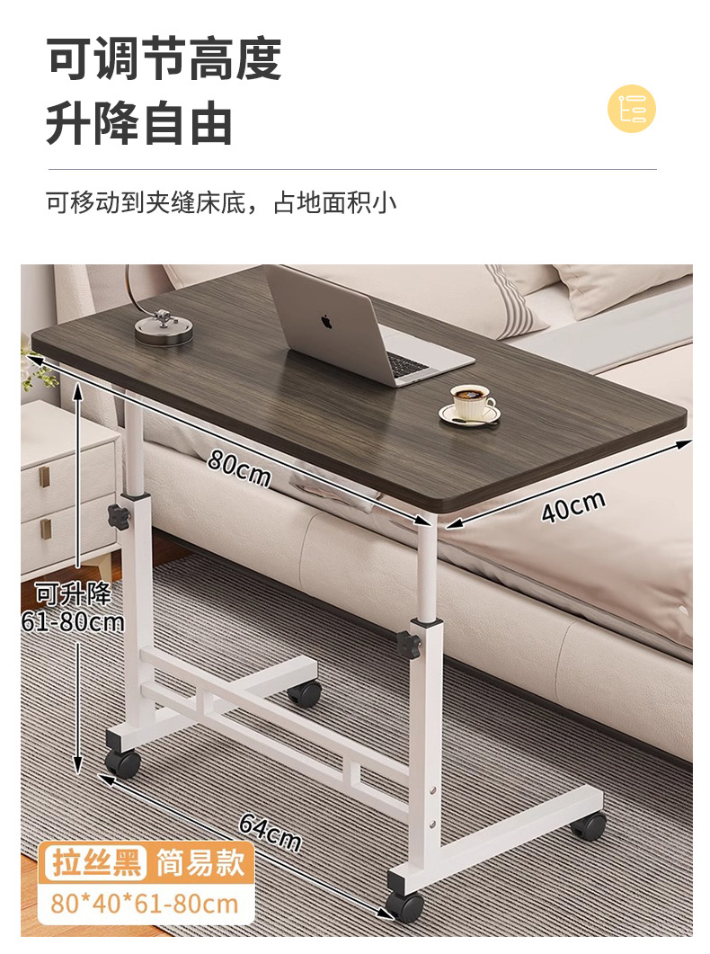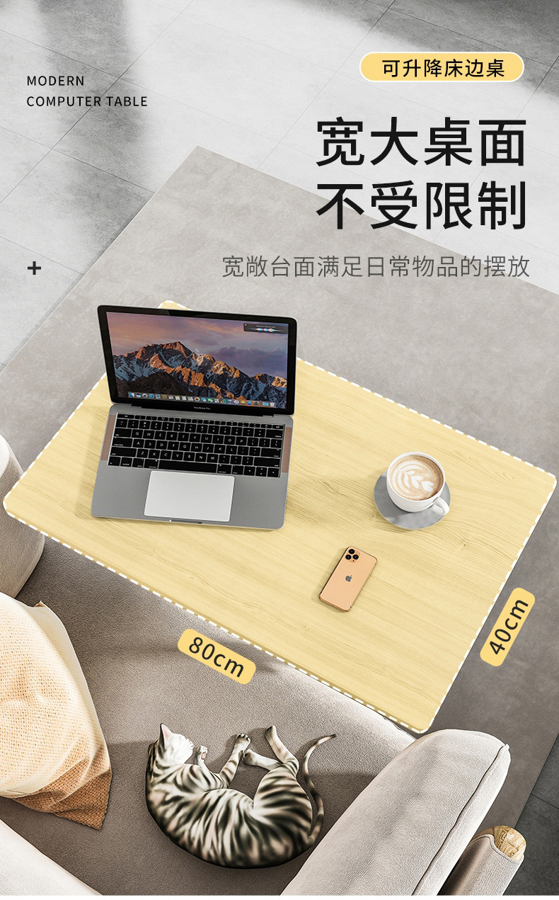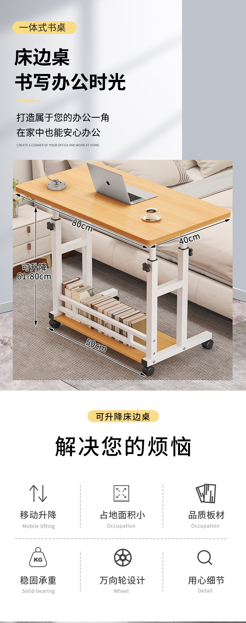 리프팅 가능한 침대 옆 테이블, 이동식 소형 테이블, 기숙사 학습 테이블, 임대 주택 침실, 가정용 간이 컴퓨터 테이블