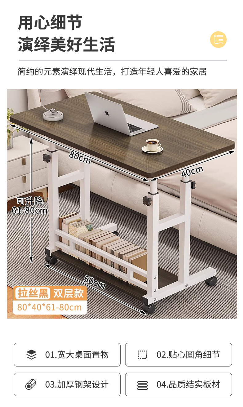 리프팅 가능한 침대 옆 테이블, 이동식 소형 테이블, 기숙사 학습 테이블, 임대 주택 침실, 가정용 간이 컴퓨터 테이블스토어 가기