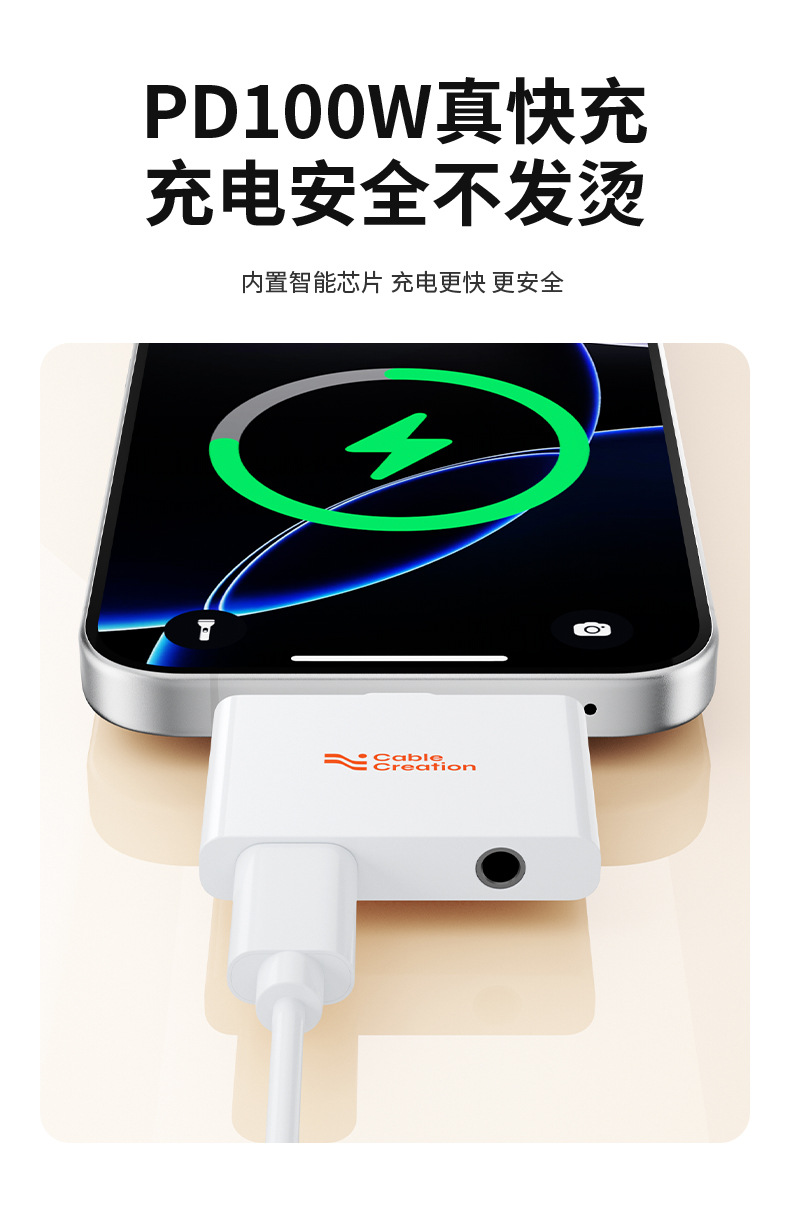 Apple에 적합한 헤드폰 어댑터 2-in-1 PD100W 고속 충전 Type-C - 3.5m 오디오 휴대폰 어댑터