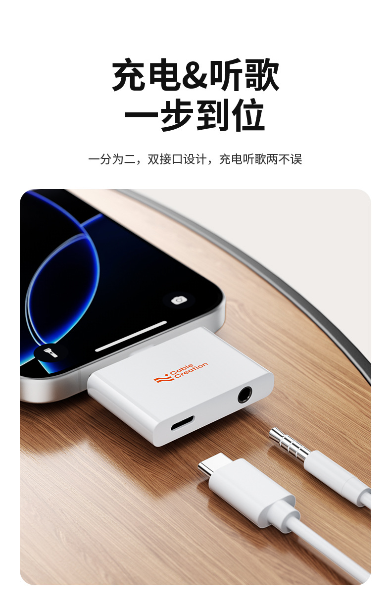 Apple에 적합한 헤드폰 어댑터 2-in-1 PD100W 고속 충전 Type-C - 3.5m 오디오 휴대폰 어댑터스토어 가기