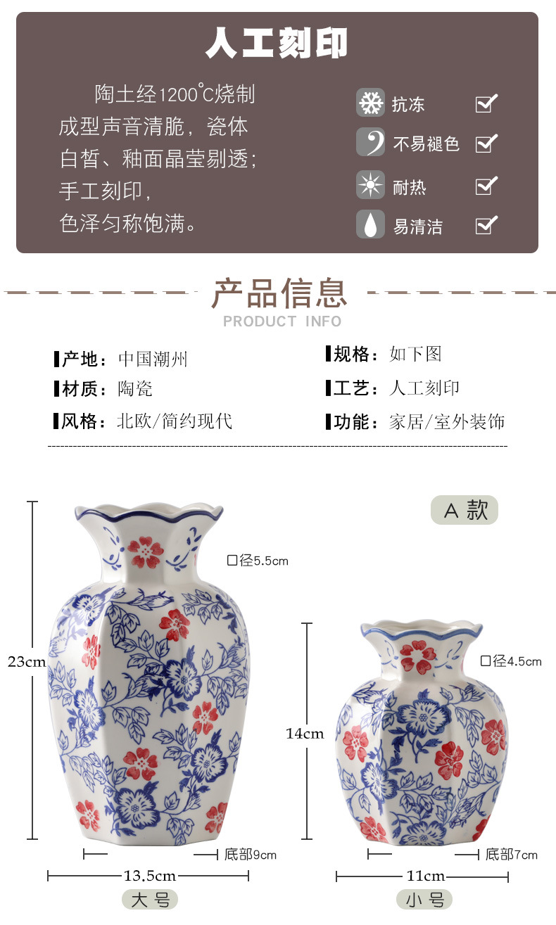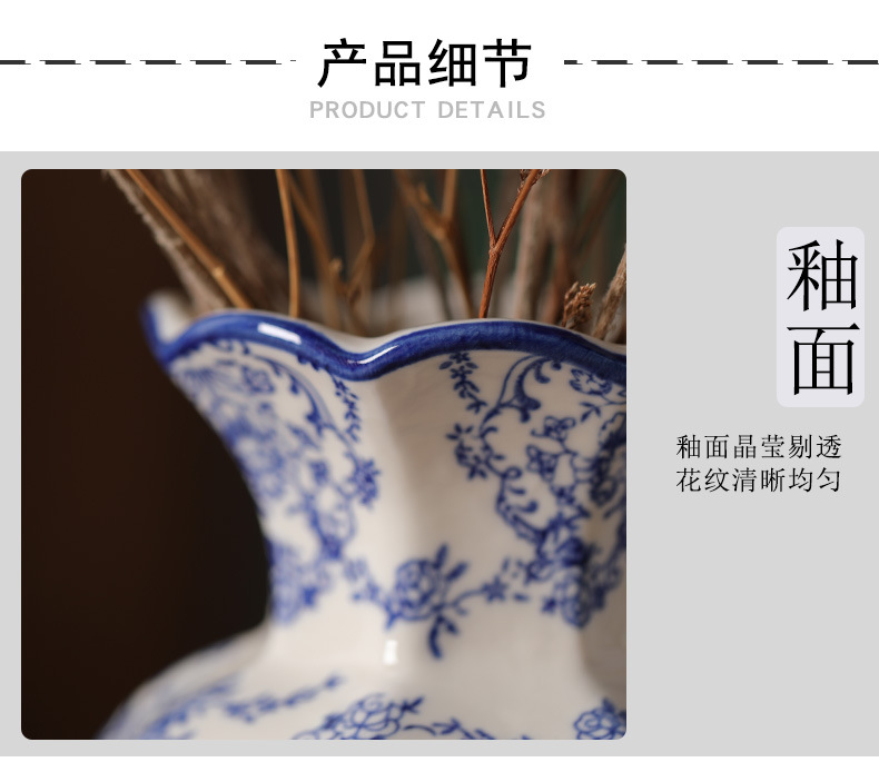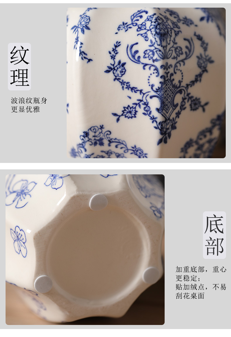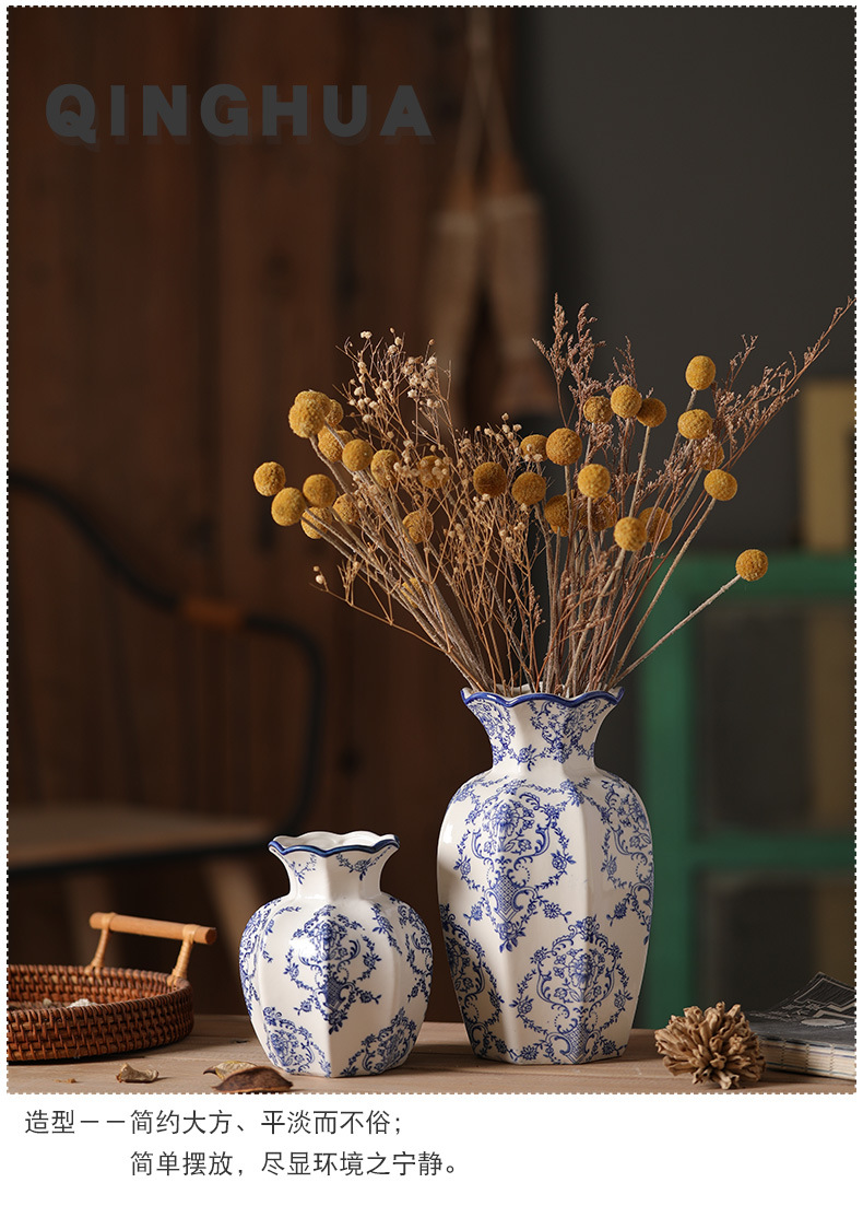 고급스러운 새로운 중국풍 복고 화분, 청화백자 도자기 꽃병, 창의적인 앤티크 수경재배 거실 꽃꽂이 장식품