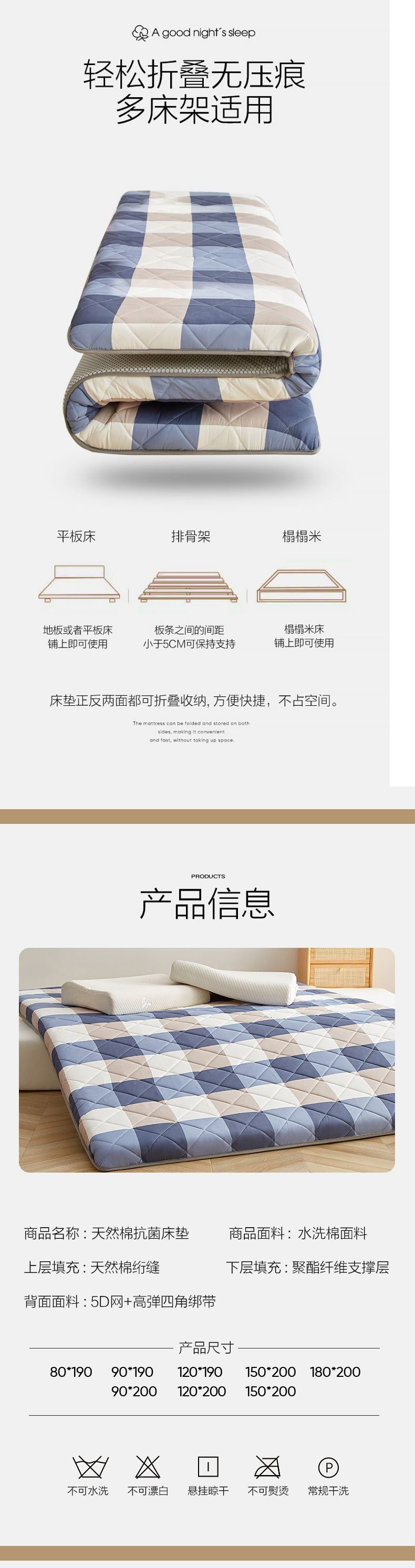 • 파란색 대형 그리드 [업그레이드 모델 두께 약 6cm] 천연 면 충전재