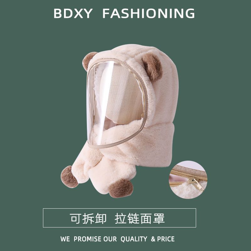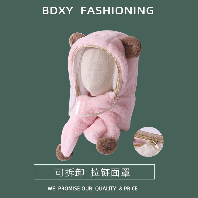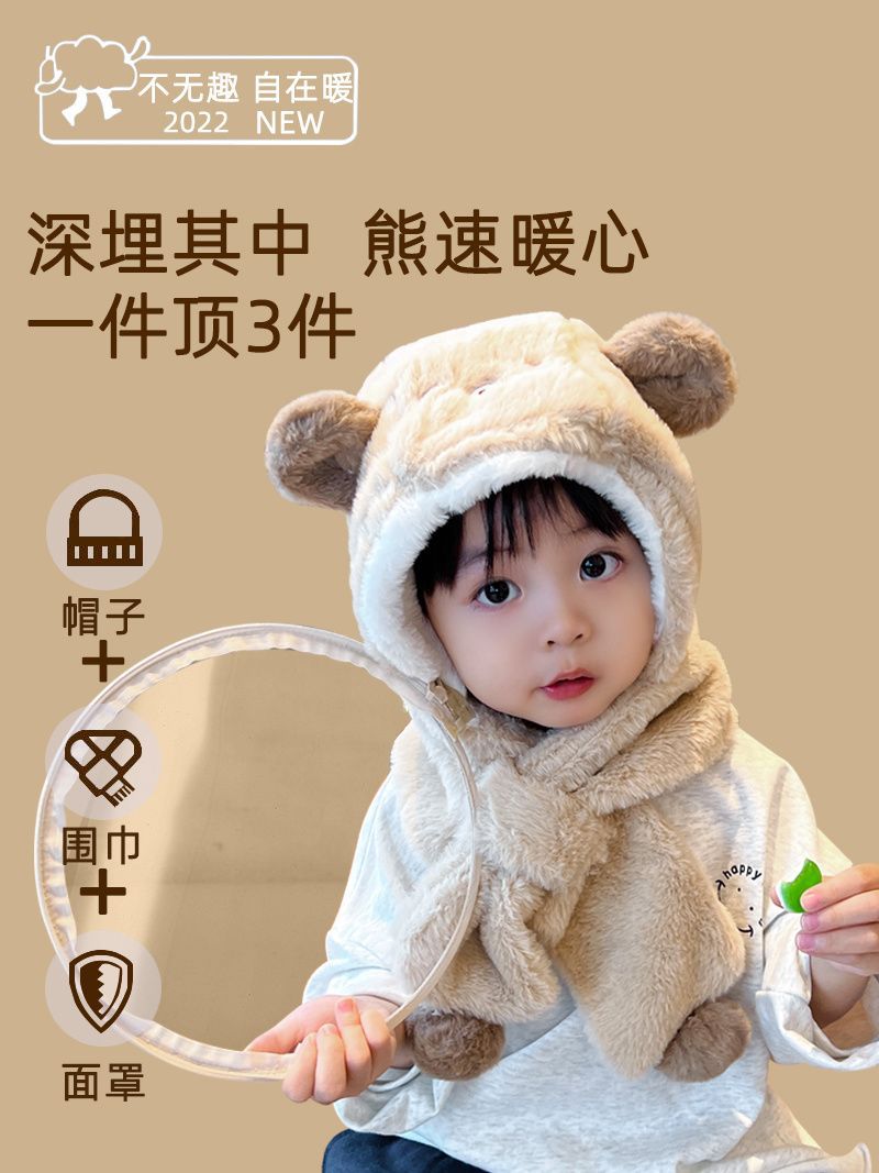 겨울철 남아, 여아용 어린이 모자, 야외 사이클링 마스크, 귀 보호 후드, 아기 모자, 스카프 일체형 모자, 귀여운스토어 가기