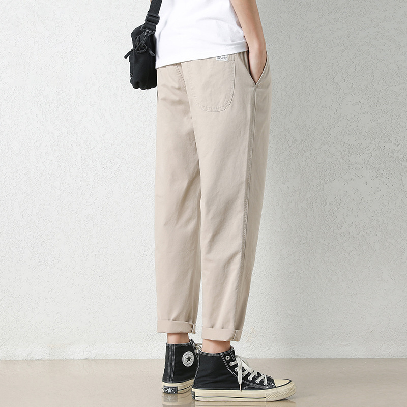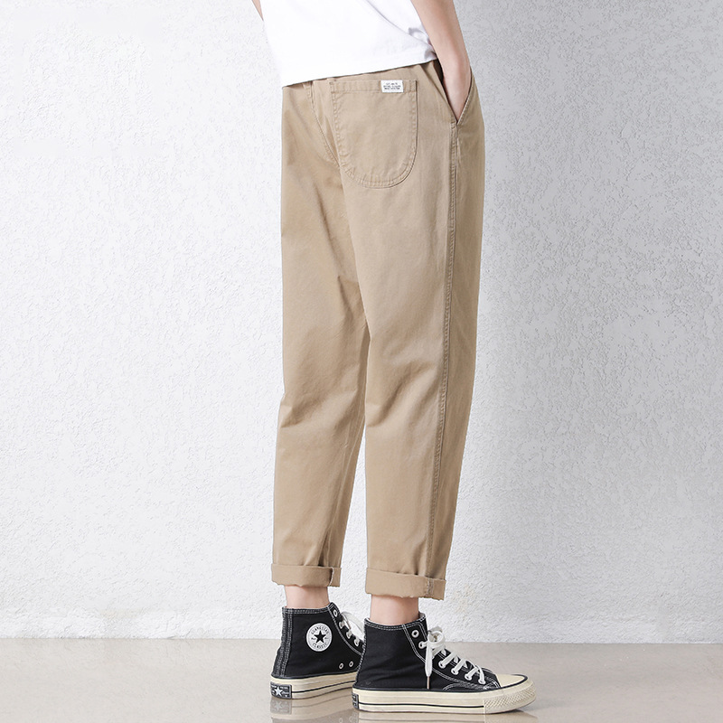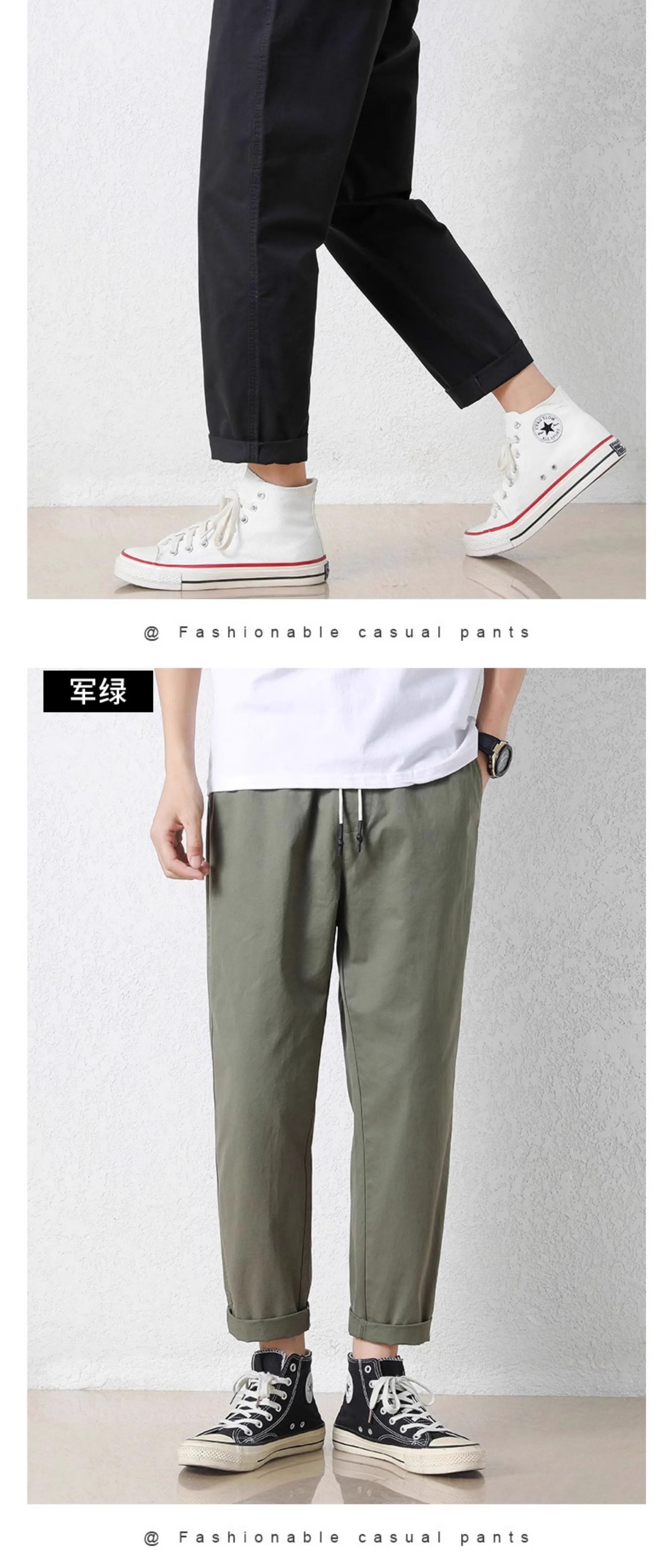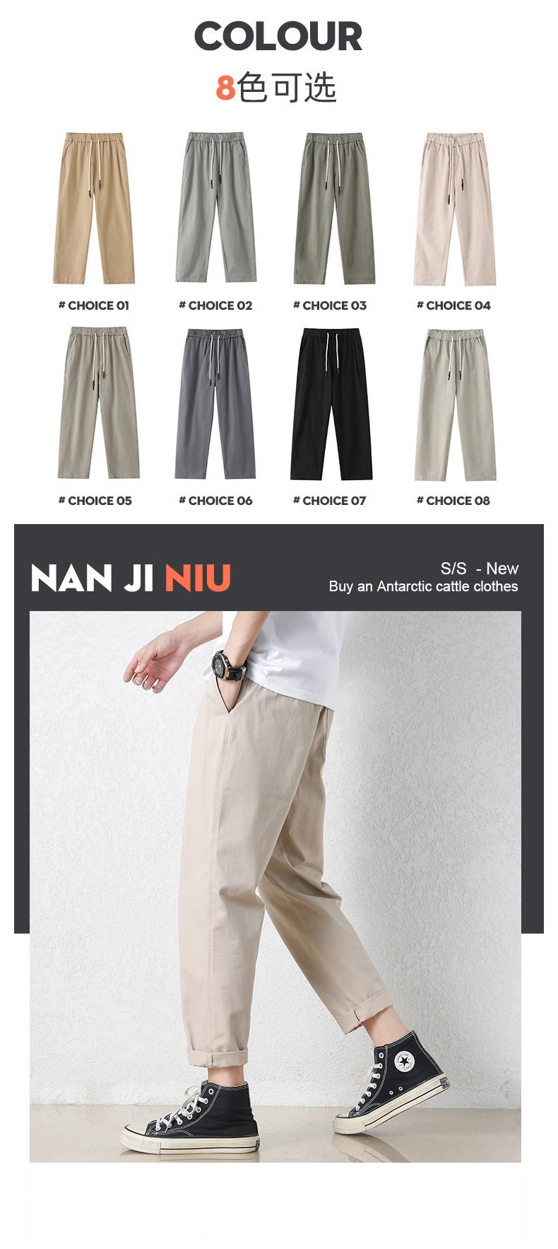 NASA 캐주얼 바지 남성 봄 여름 얇은 루즈 테이퍼 9부 팬츠 하이 코튼 캐주얼 스포츠 바지 스트레이트 팬츠스토어 가기