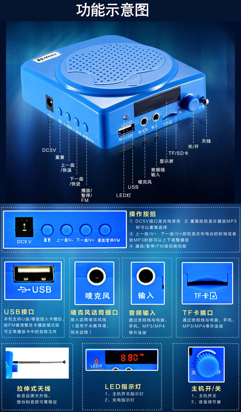 교사를 위한 소형 확성기, 교사 전용 마이크, 투어 가이드, 무선 마이크, 대용량 거리 스피커, 스피커, 대외 무역스토어 가기