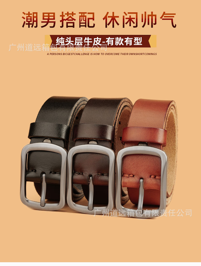남성용 1층 소가죽 벨트, 천연가죽 핀버클, 레트로 캐주얼 청소년 워싱 핸드메이드 벨트, 1층 순수 소가죽 벨트스토어 가기