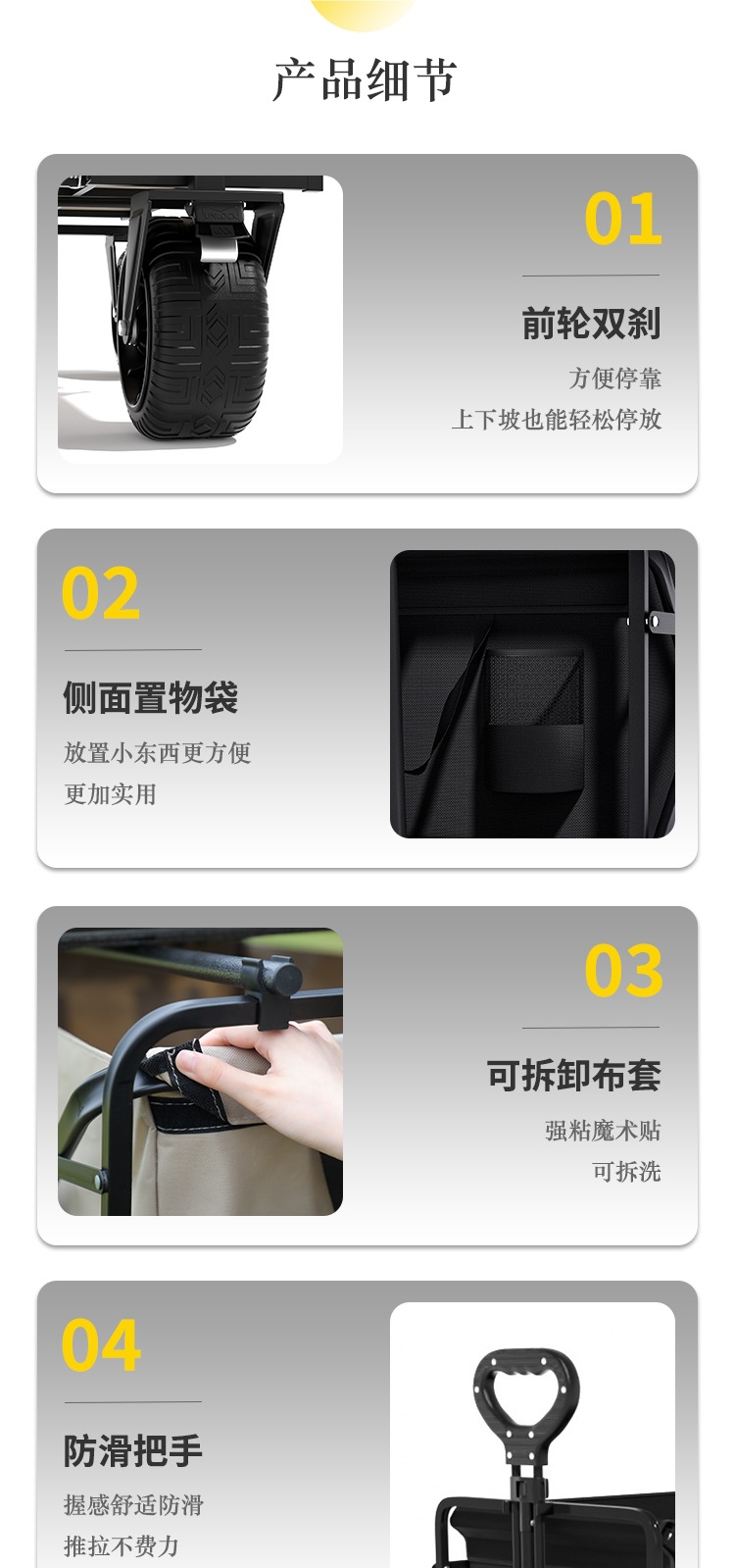 • 업그레이드된 카키색 두꺼운 프레임, 10년 동안 내구성이 뛰어난 견고한 범용 휠