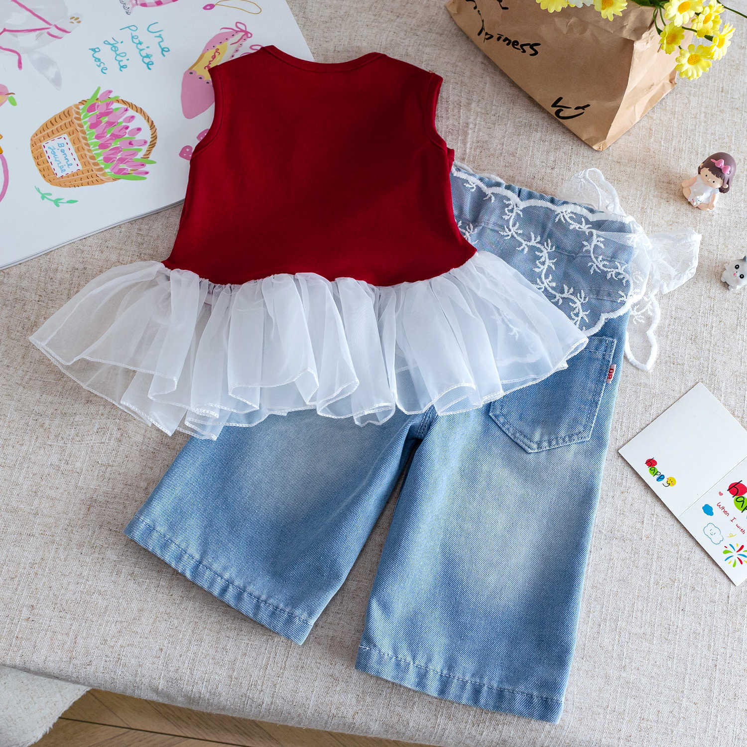여자 정장 2025 새로운 여름 어린이 한국어 스타일 달콤하고 귀여운 조끼와 스커트 투피스 세트 아기 소녀 유행