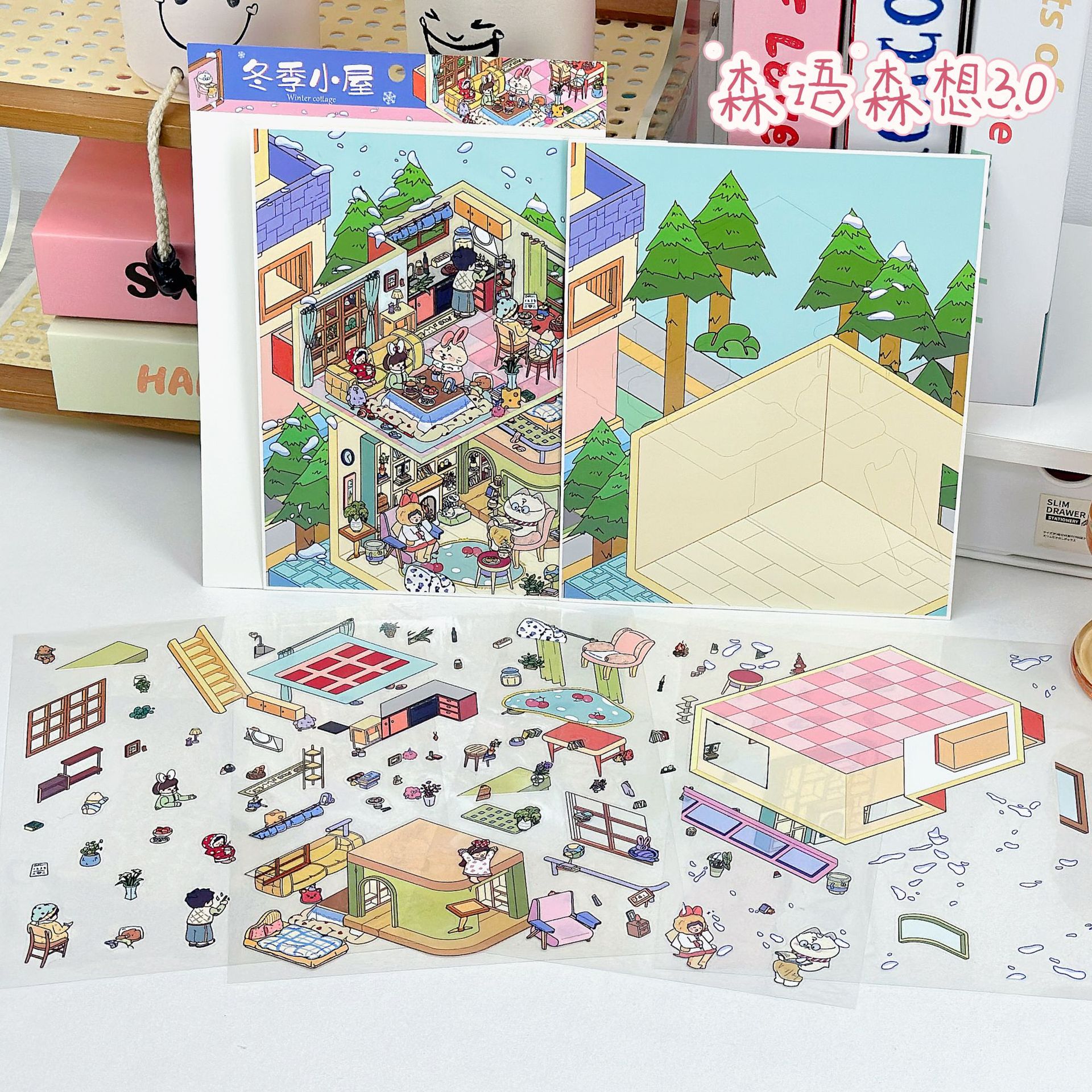 3.0 Senyu Senyu 조경 스티커 만화 입체 캐빈 콜라주 미니어처 장면 저장 장난감 핸드북 크리에이티브