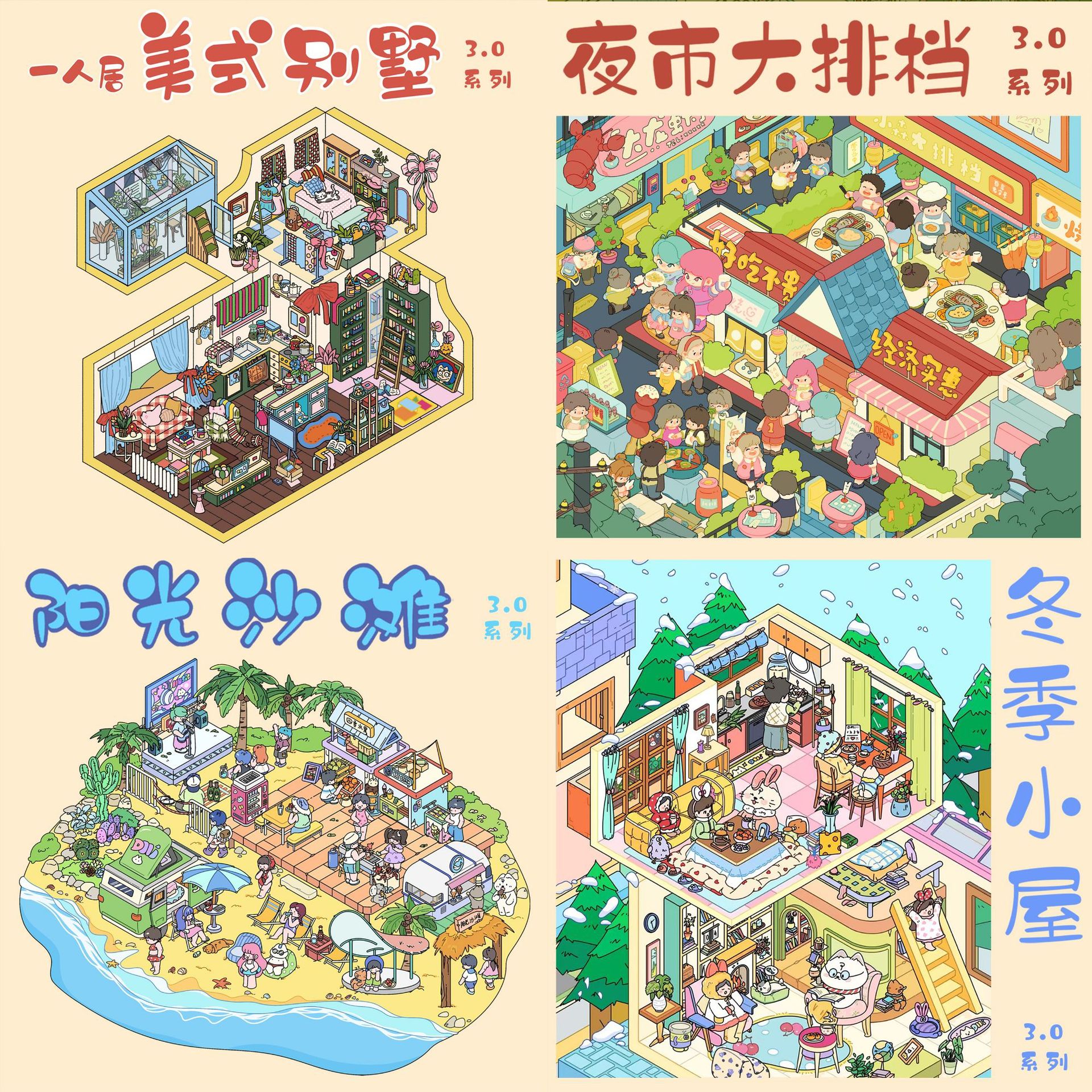 3.0 Senyu Senyu 조경 스티커 만화 입체 캐빈 콜라주 미니어처 장면 저장 장난감 핸드북 크리에이티브스토어 가기