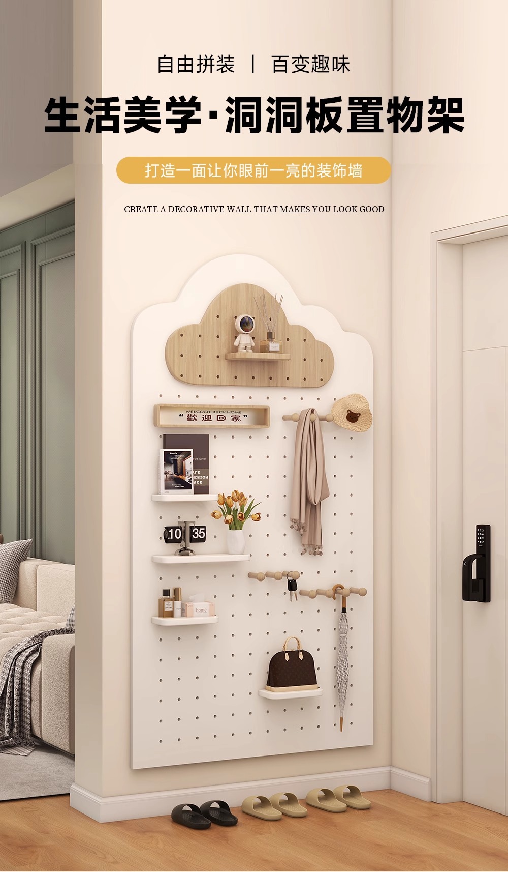 중고 Yunduoduo 구멍 보드 보관함 입구 현관 스타일 벽걸이 보드 파티션 벽 액세서리 보관함스토어 가기