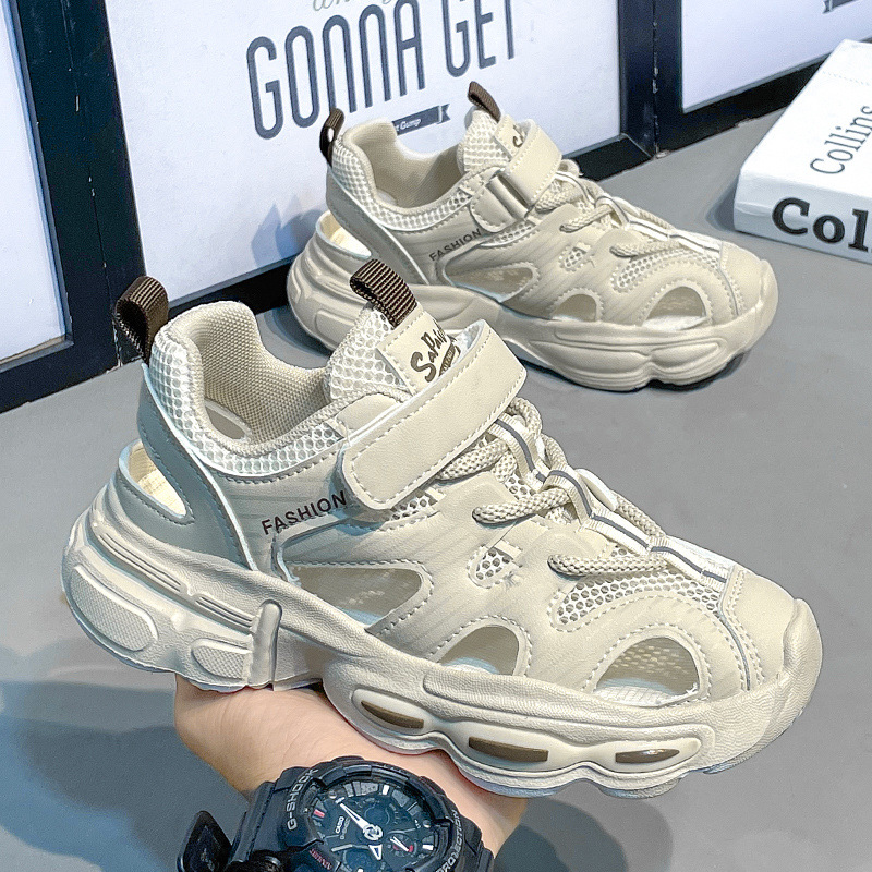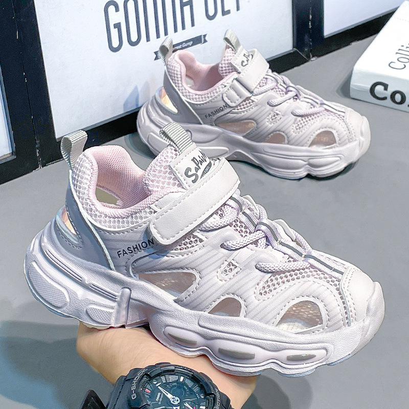 소년 샌들 2025 새로운 여름 스타일 중대형 어린이 캐주얼 통기성 메쉬 스포츠 소녀 어린이 중공 해변 신발