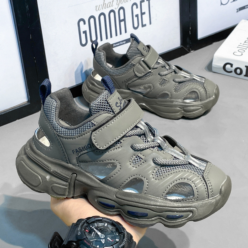 소년 샌들 2025 새로운 여름 스타일 중대형 어린이 캐주얼 통기성 메쉬 스포츠 소녀 어린이 중공 해변 신발스토어 가기
