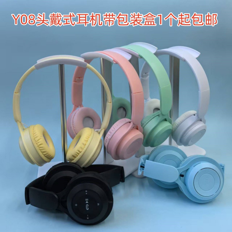국경 간 인기 Y08 헤드 장착형 블루투스 헤드셋 미니 버전 접이식 게임 마카롱 선물 헤드셋 헤드셋스토어 가기