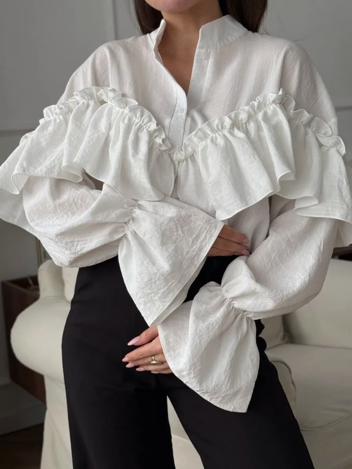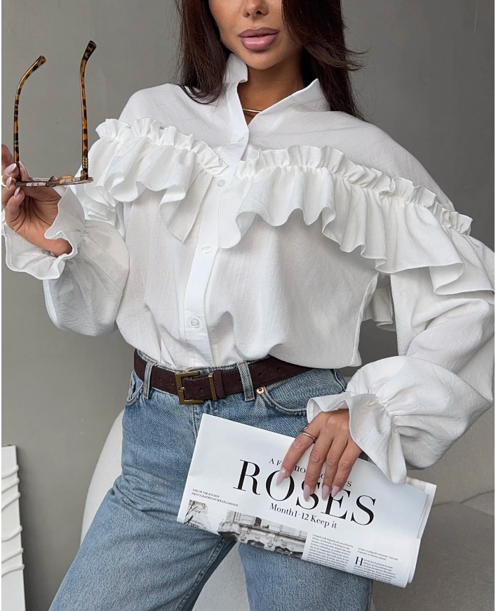 봄 여름 신상 여성복, 우아한 레이스 레이어드 장식 캐주얼 셔츠, 프렌치 레이스 스플라이싱 긴팔 탑스토어 가기
