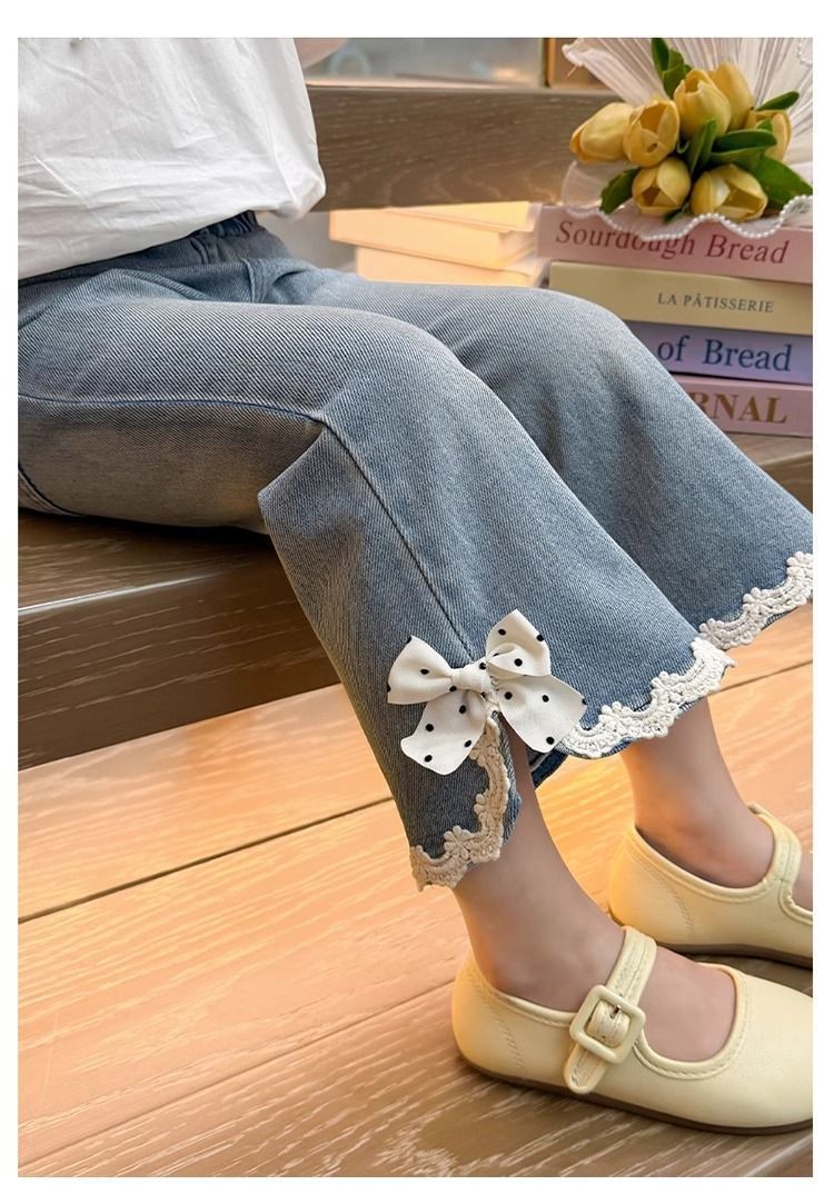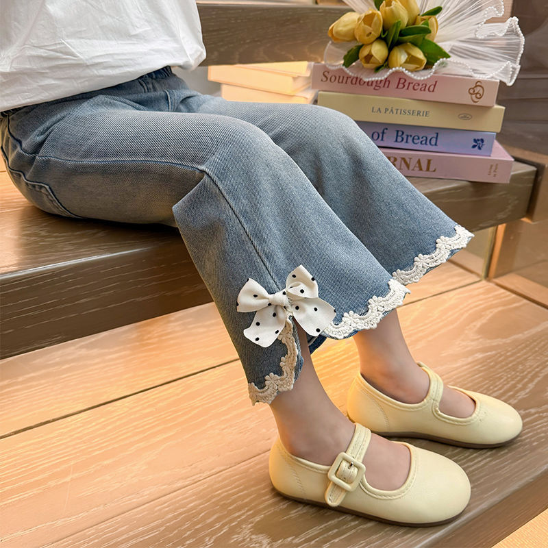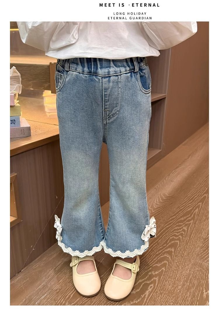 여아 청바지 2025 가을 아동 신상 스타일 다재다능한 아우터 베이비 레이스 슬릿 한국식 마이크로 플레어 팬츠
