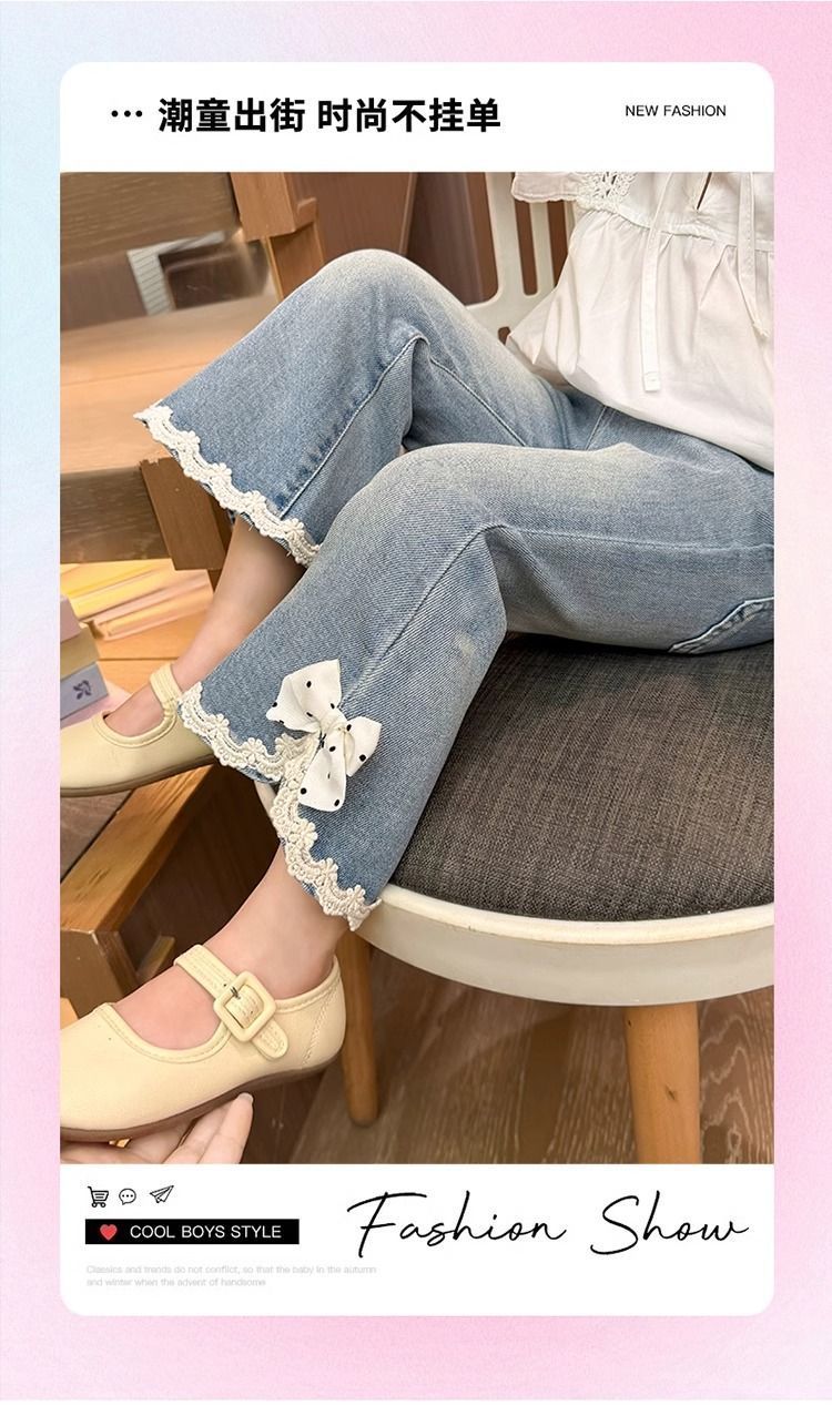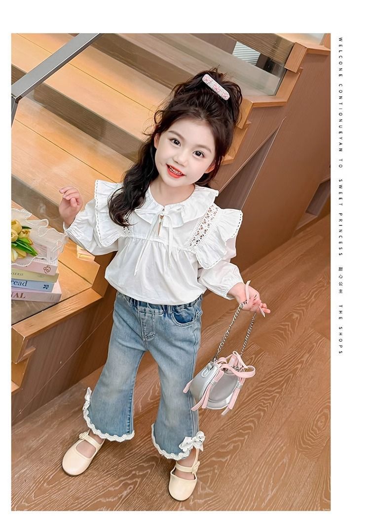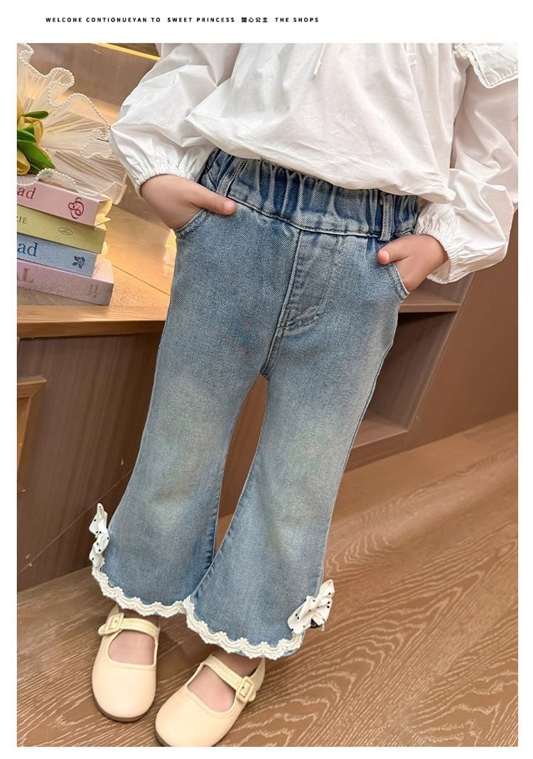 여아 청바지 2025 가을 아동 신상 스타일 다재다능한 아우터 베이비 레이스 슬릿 한국식 마이크로 플레어 팬츠스토어 가기