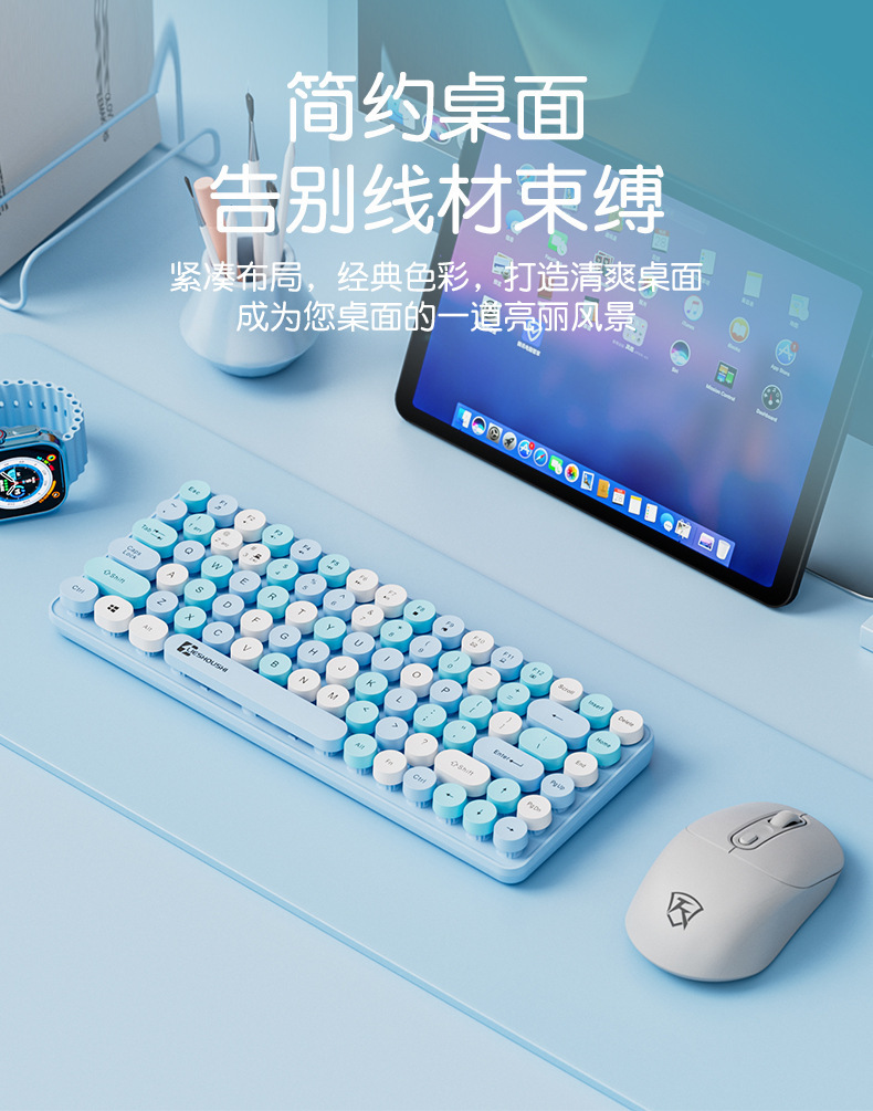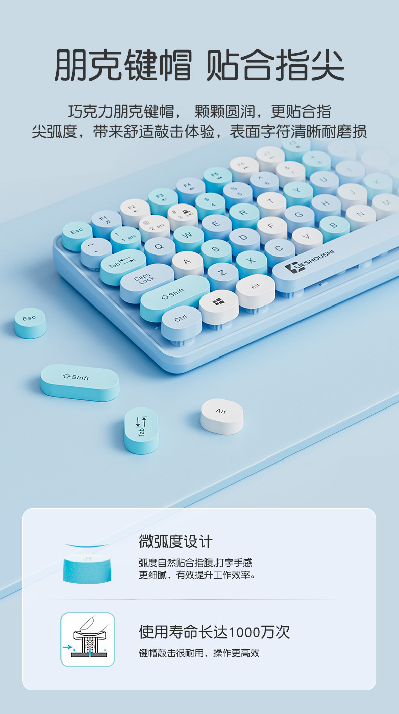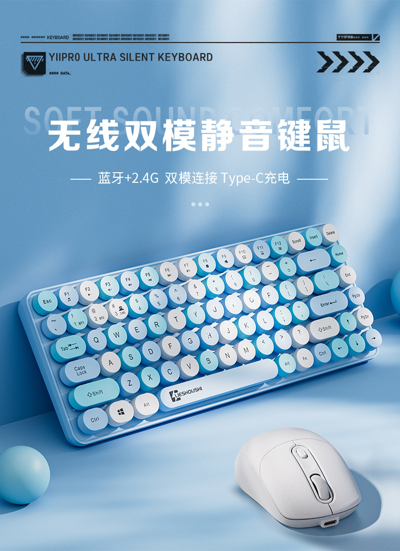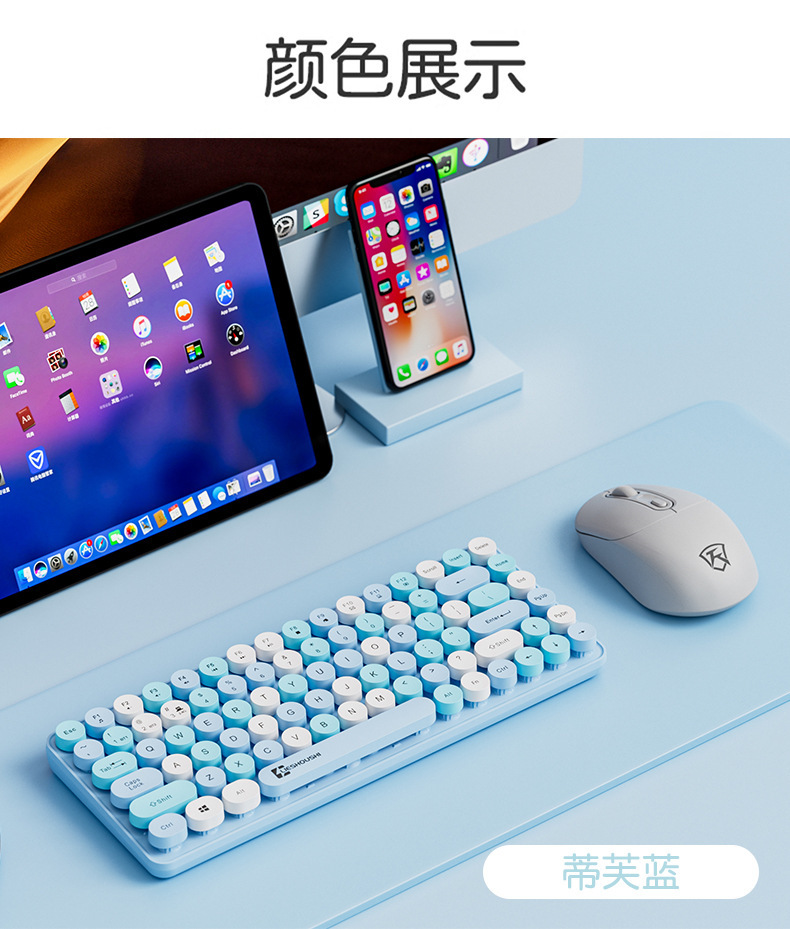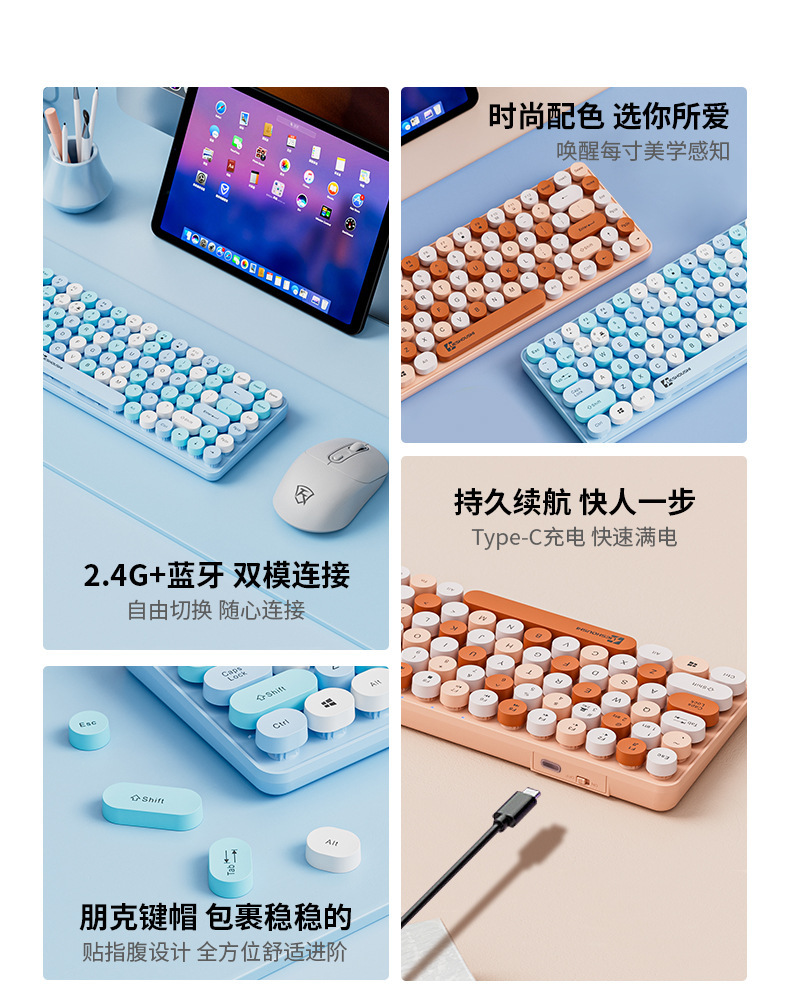 무선 키보드 기계적 느낌 무음 컴퓨터 블루투스 충전 고가치 소녀 사무실 펑크 마우스 84 키스토어 가기