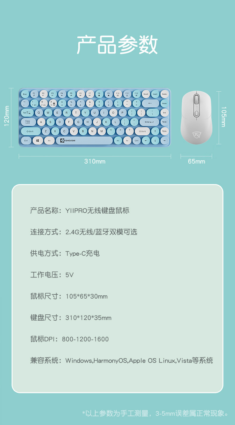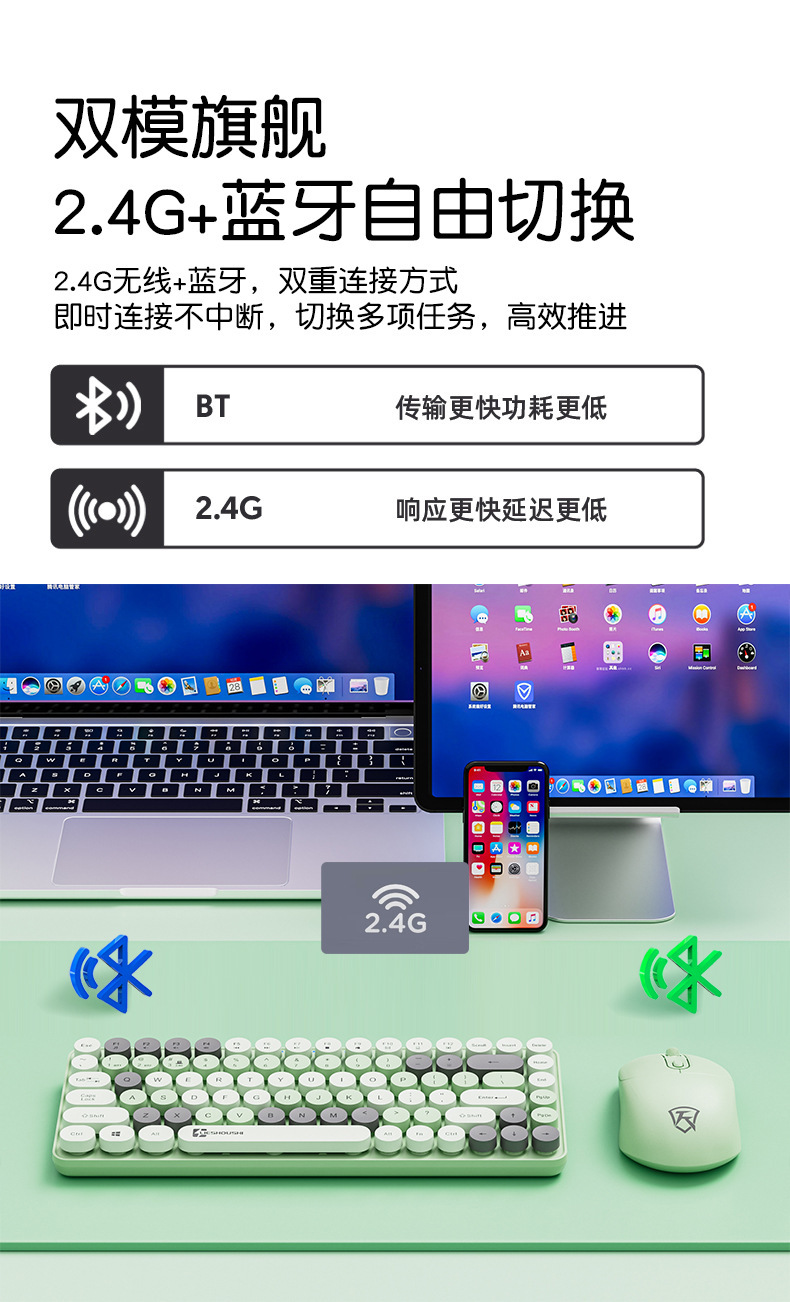• Qinglu Dai 2.4G+Bluetooth 듀얼 모드 키보드+무선 마우스