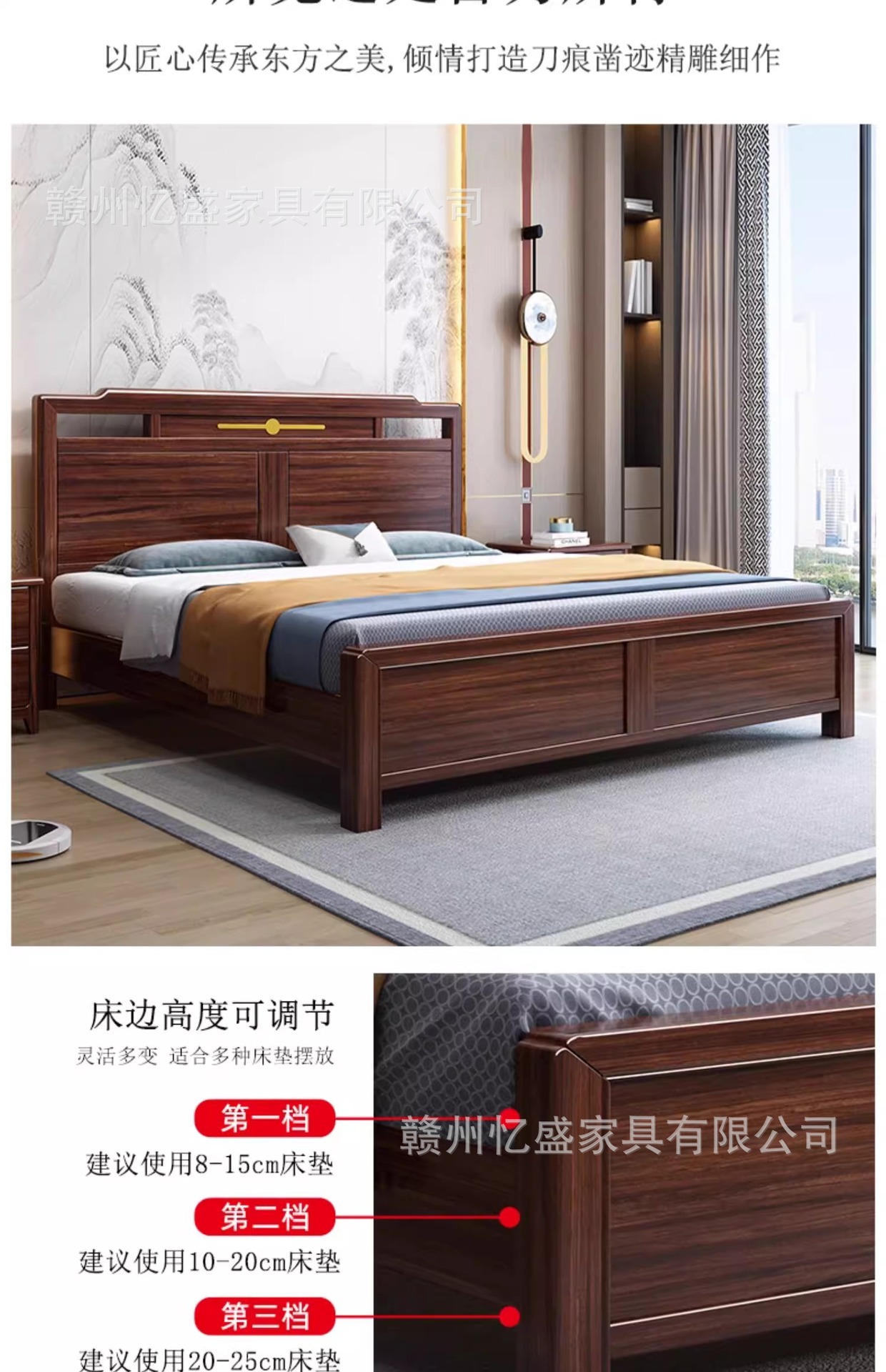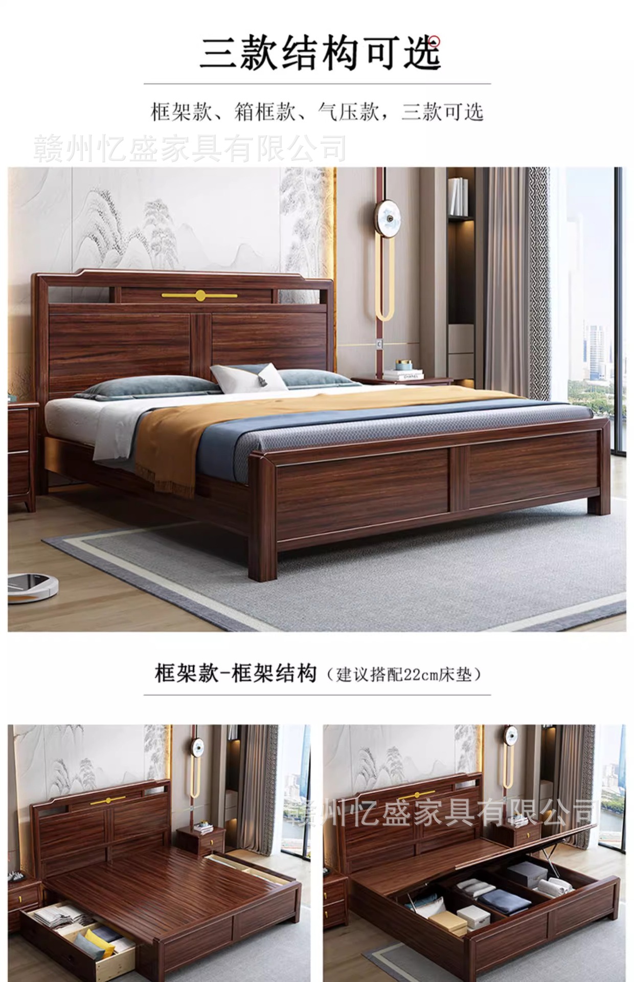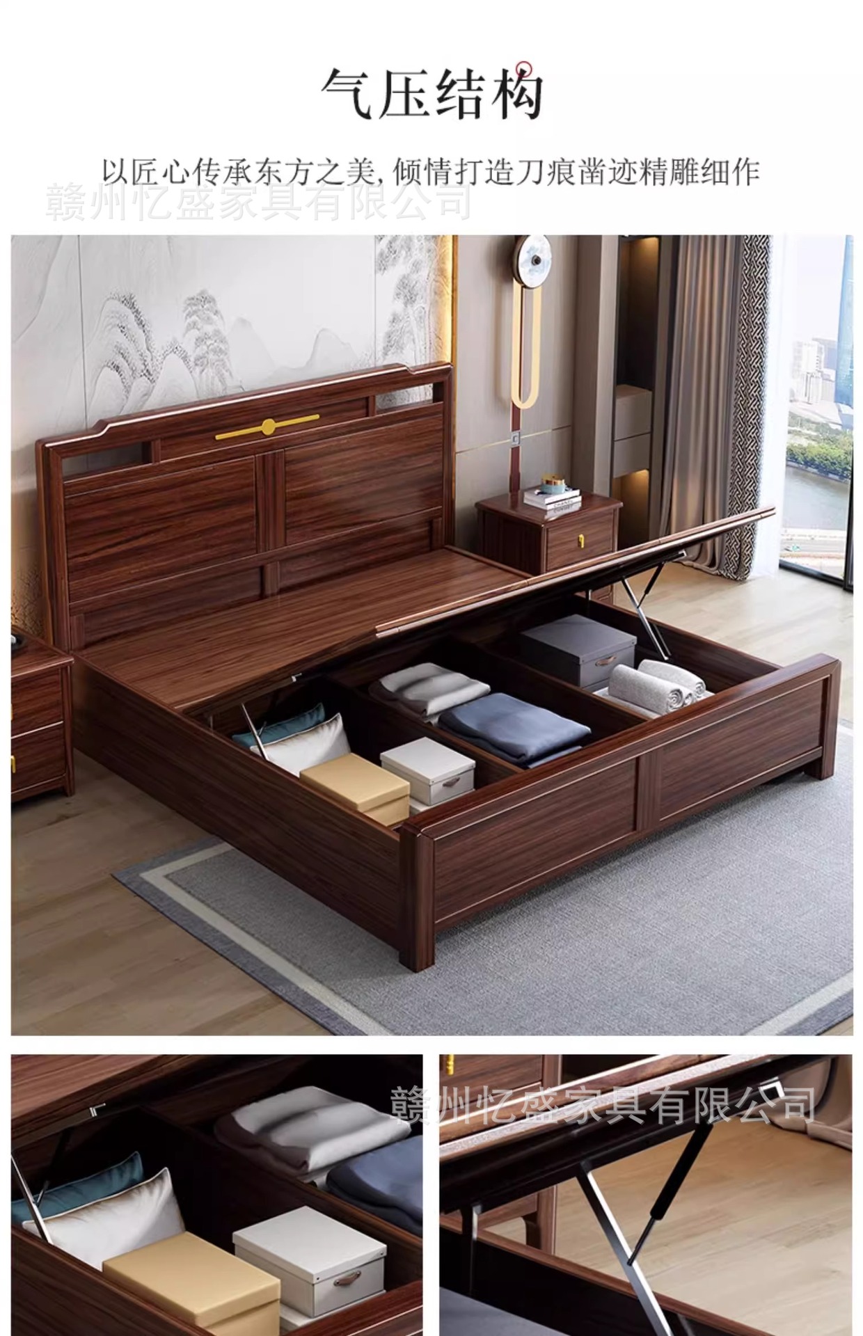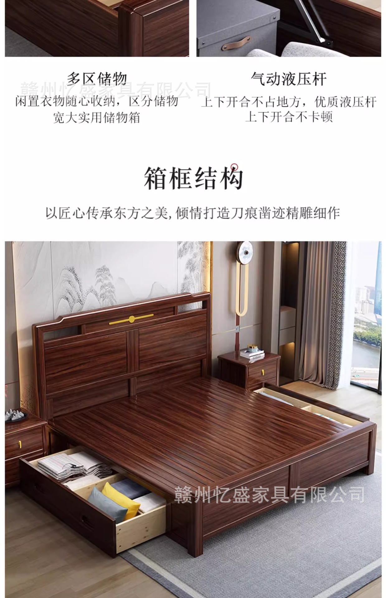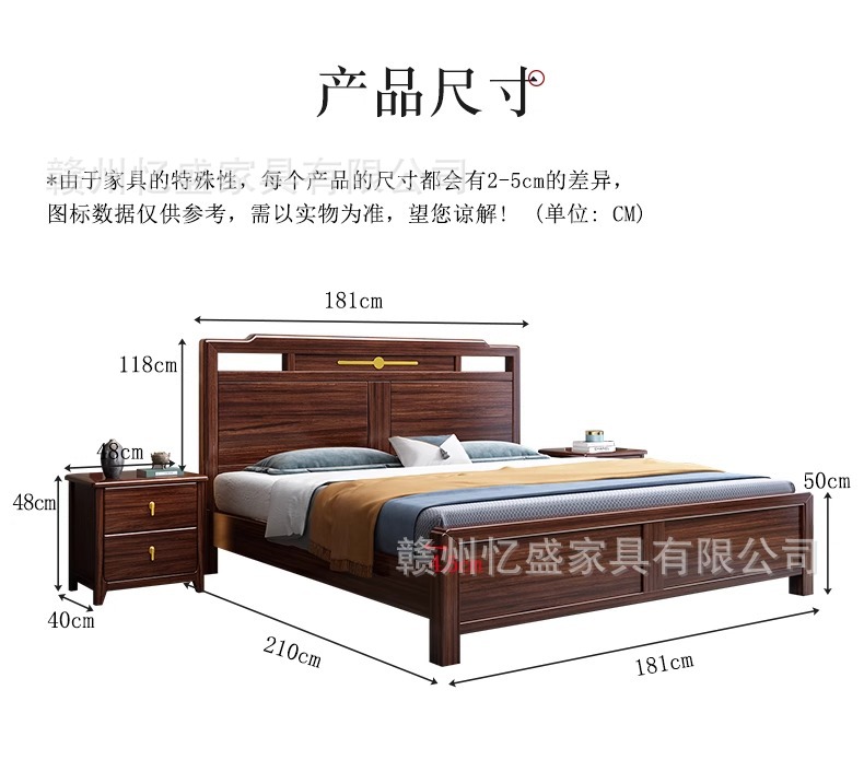 새로운 중국 스타일의 검은 나무 원목 침대 1.8m 더블 침대 라이트 럭셔리 모던 심플 1.5m 마스터 침실 하이 박스 수납 침대스토어 가기